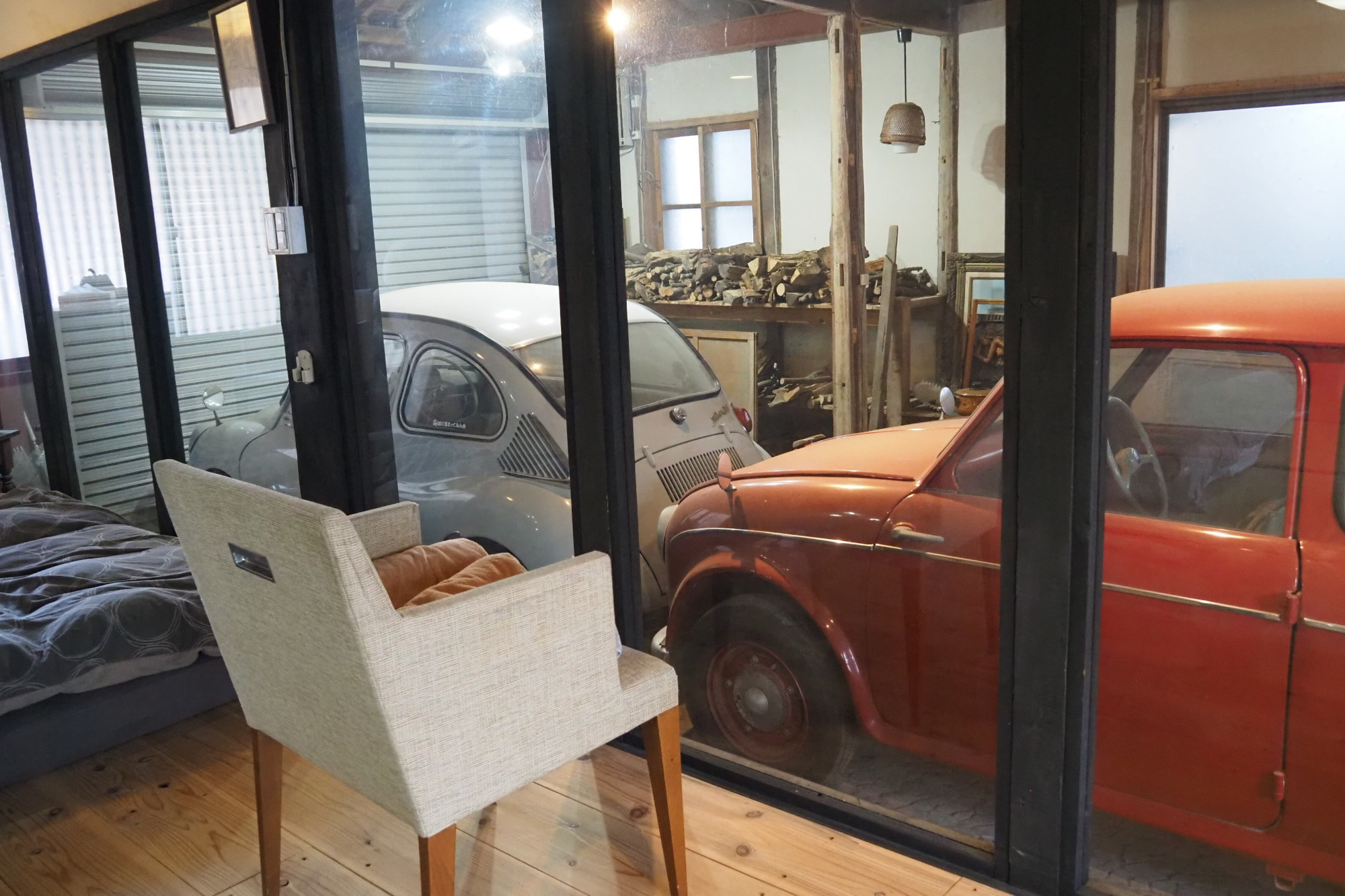 そして、ガレージには2台の旧車が置かれています。「てんとう虫」の愛称で親しまれる「スバル360」と、丸みを帯びたフォルムが愛らしい「三菱500」です。