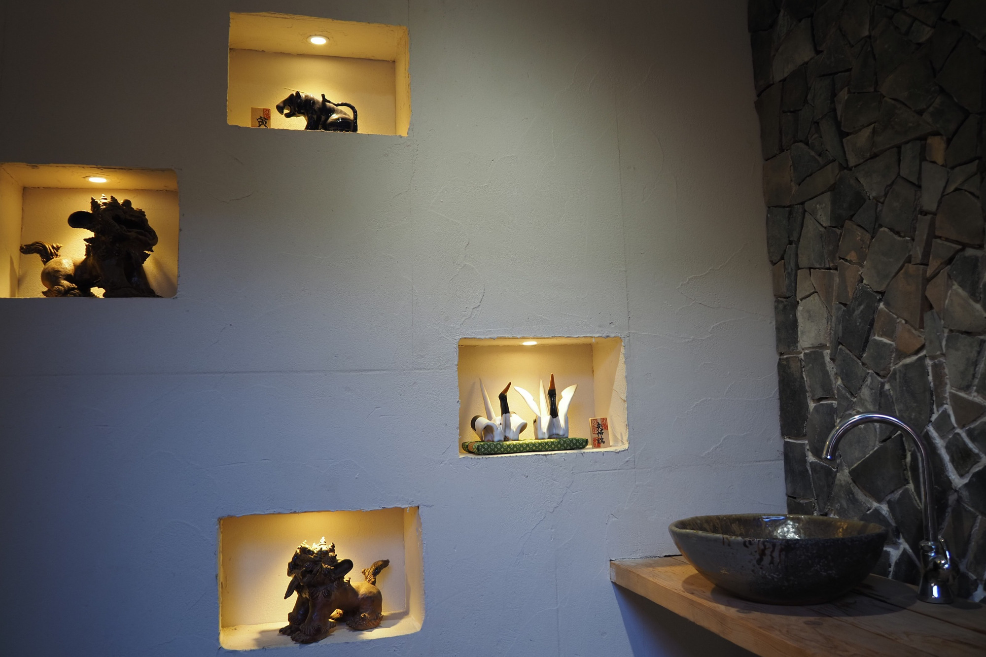 壁や床、照明のひとつひとつにオーナーのセンスが光り、手が掛けられたからこその温かみが感じられます。「ピカピカの新築とは違う、古い建物の趣を楽しんでほしい」というオーナーの言葉通り、DIYや古いものが好きな人にはたまらない空間です。