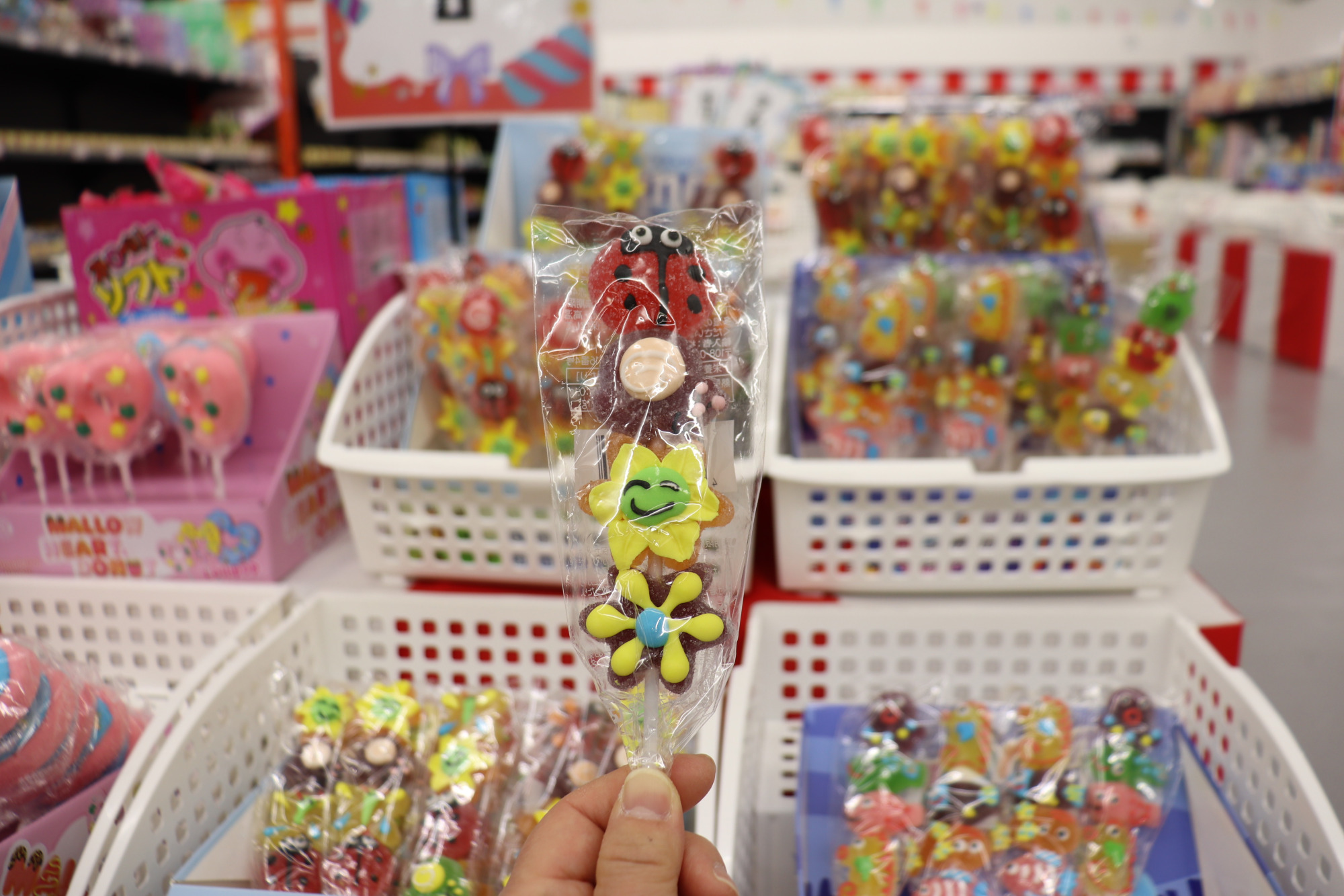 フロアに入ってまず最初に目に飛び込んでくる朱赤の鳥居がインパクトがあります!鳥居の周りには駄菓子がたくさん並んでいて、吸い込まれるように駄菓子のフロアに入りました。約5,000種類の駄菓子がズラリと並んでいて、まるでお菓子のテーマパークのようです。