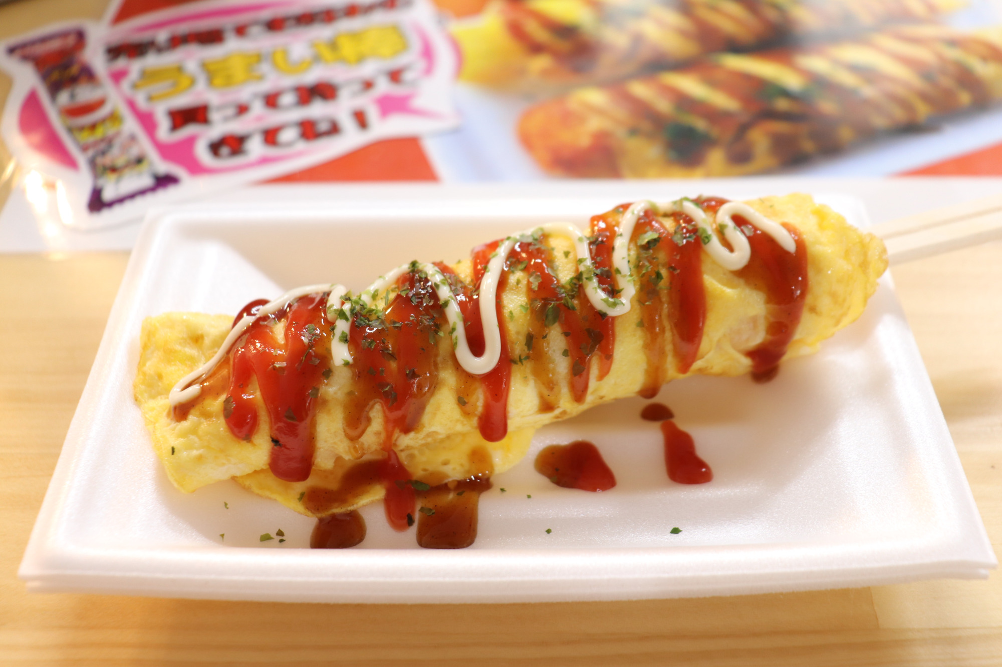 だがしコーナーで好きなうまい棒を買ってフードコーナーに持っていくと、「だがしの卵焼き」(100円)にしてもらえるサービスがあります。大好きなうまい棒チーズ味を買ってお願いしてみました。ケチャップとマヨネーズ、青のりは自分でトッピングします。出来たてを食べるのがおすすめです!写真を撮っていて少し時間がたつと、うまい棒にしんなりして食べにくくなっていました(笑)。お味は美味しいです!