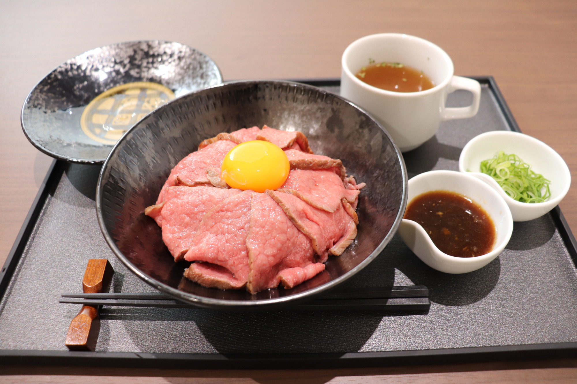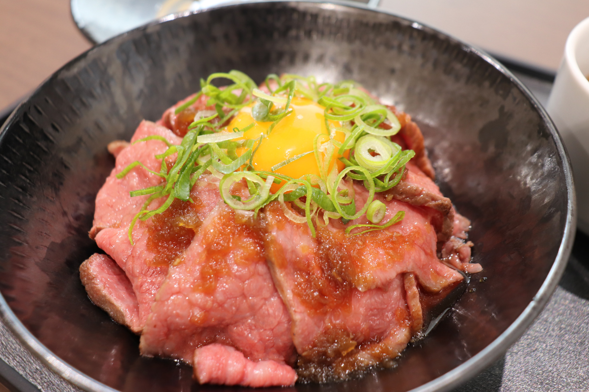 2階フロアではランチも食べることができ、なかでも近江牛を使ったローストビーフ丼(発売記念価格1,500円、なくなり次第通常価格2,000円)は絶品です!近江牛は滋賀県の日本三大和牛のひとつで、霜降りと赤身の上品なお味が人気。ここでこのお値段で頂けるのがうれしかったです。お肉は少し厚みがあり、近江牛の美味しさを堪能できました!ぜひ食べてみてください。