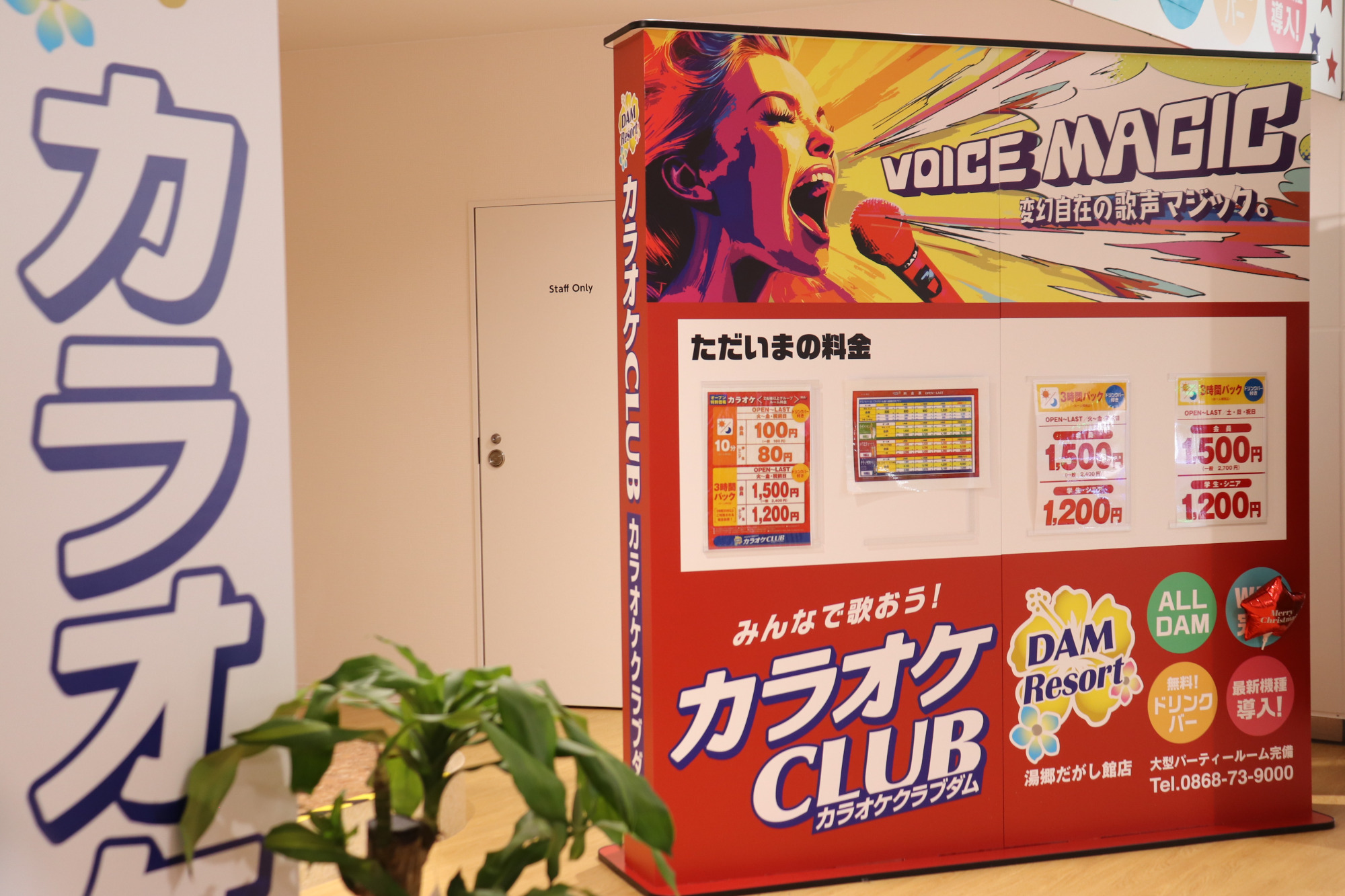 湯郷温泉街でカラオケするならぜひこちらへ!新しいカラオケルームなので、お部屋もタイプがいろいろあり、機械も新しいのでおすすめです。