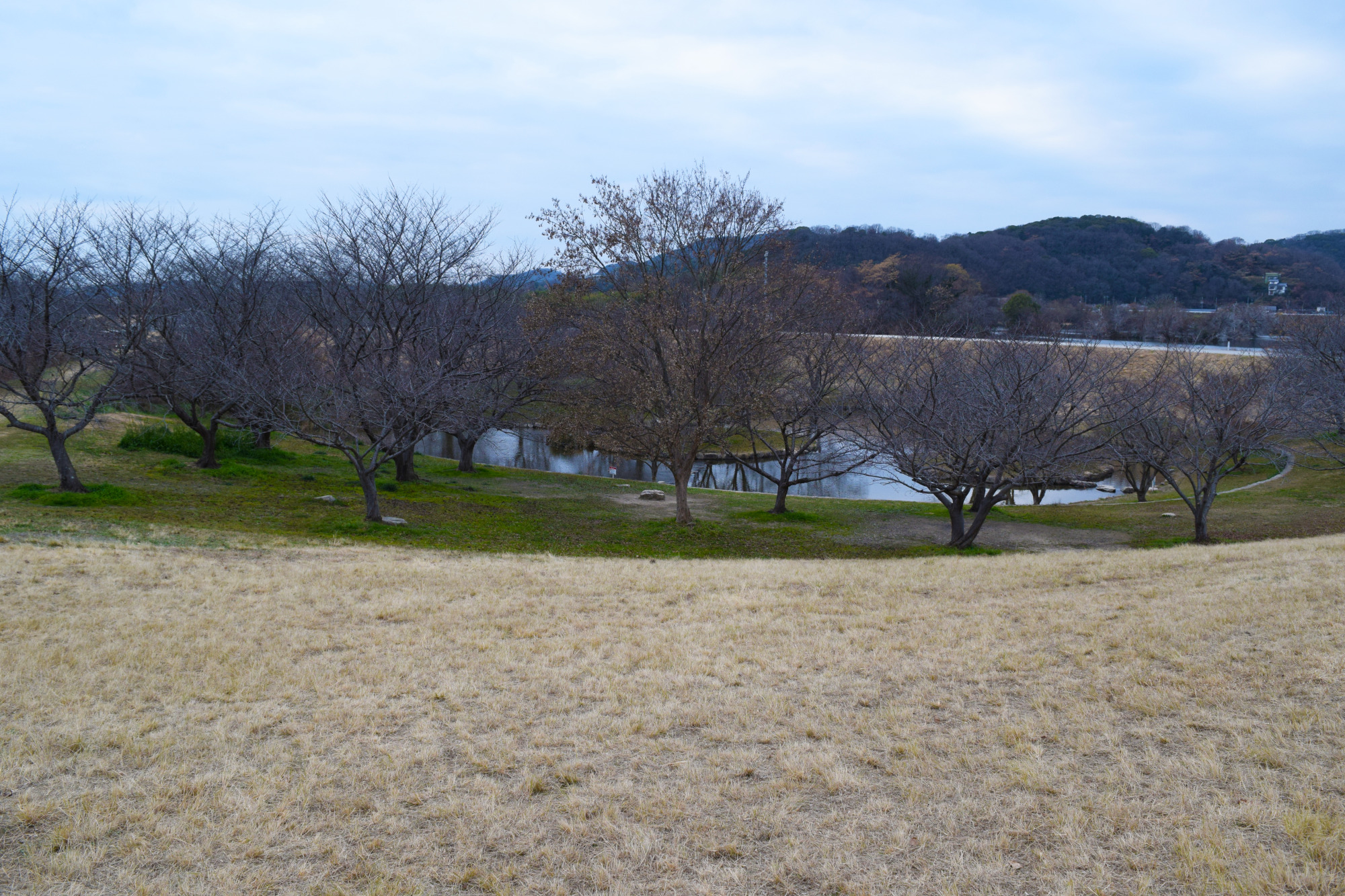 岡山市中区今在家に旭川から百間川が分かれる分流部があり、「荒手(あらて)」と呼ばれる旭川から百間川へ水を逃がすための特殊な構造物が設けられています。現地周辺は「百間川せせらぎ広場」として春はお花見、夏場には水遊びなどができる市民の憩いの場になっています。