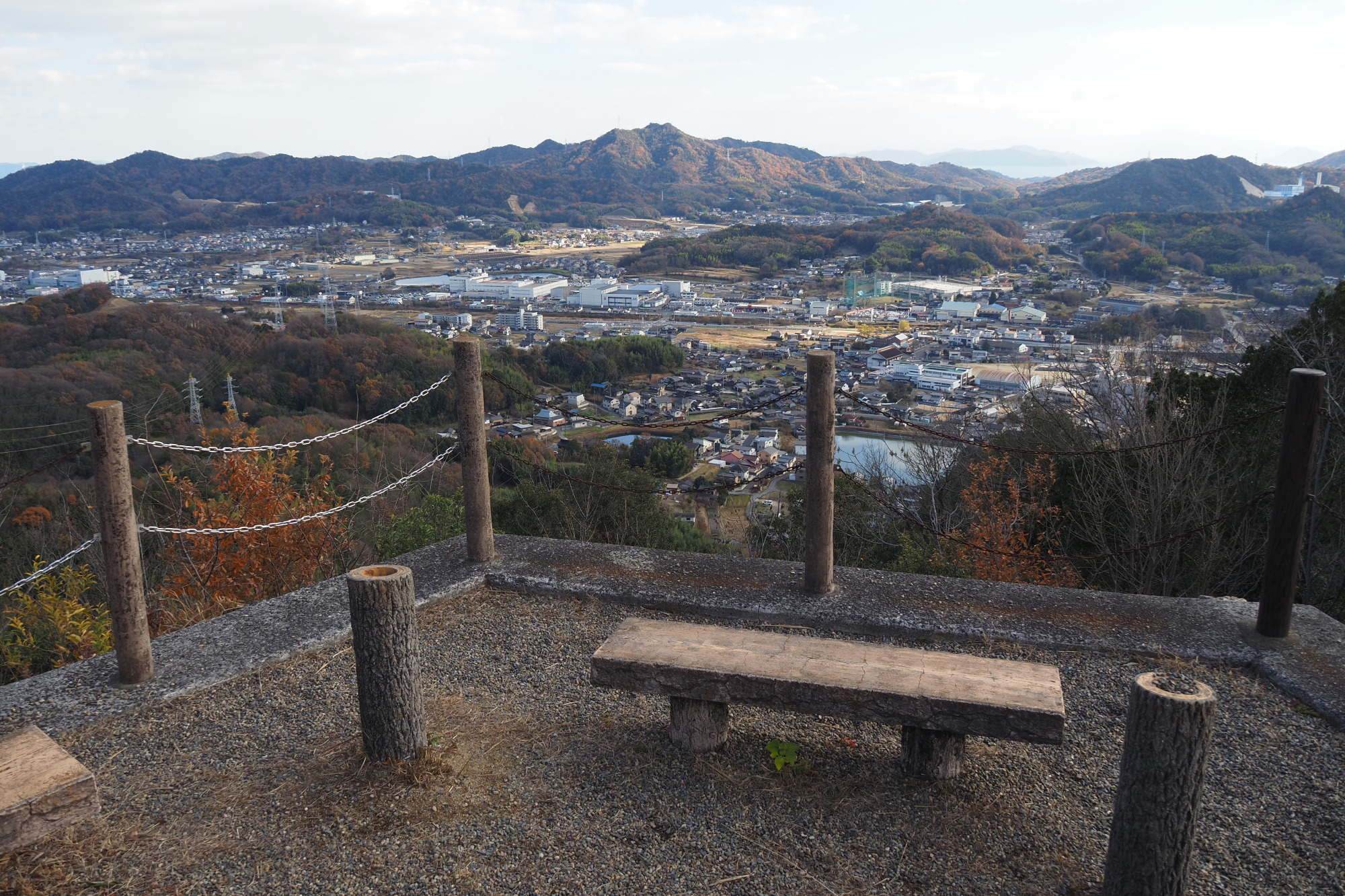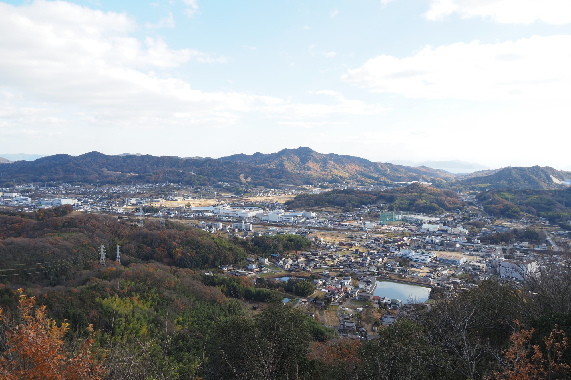 里庄の町並みや浅口市・笠岡市、遠く瀬戸内海の島々まで見渡せる大パノラマが広がります。