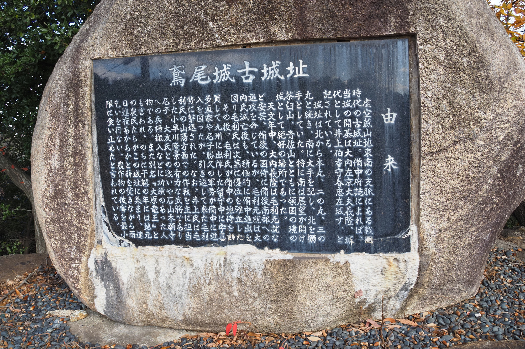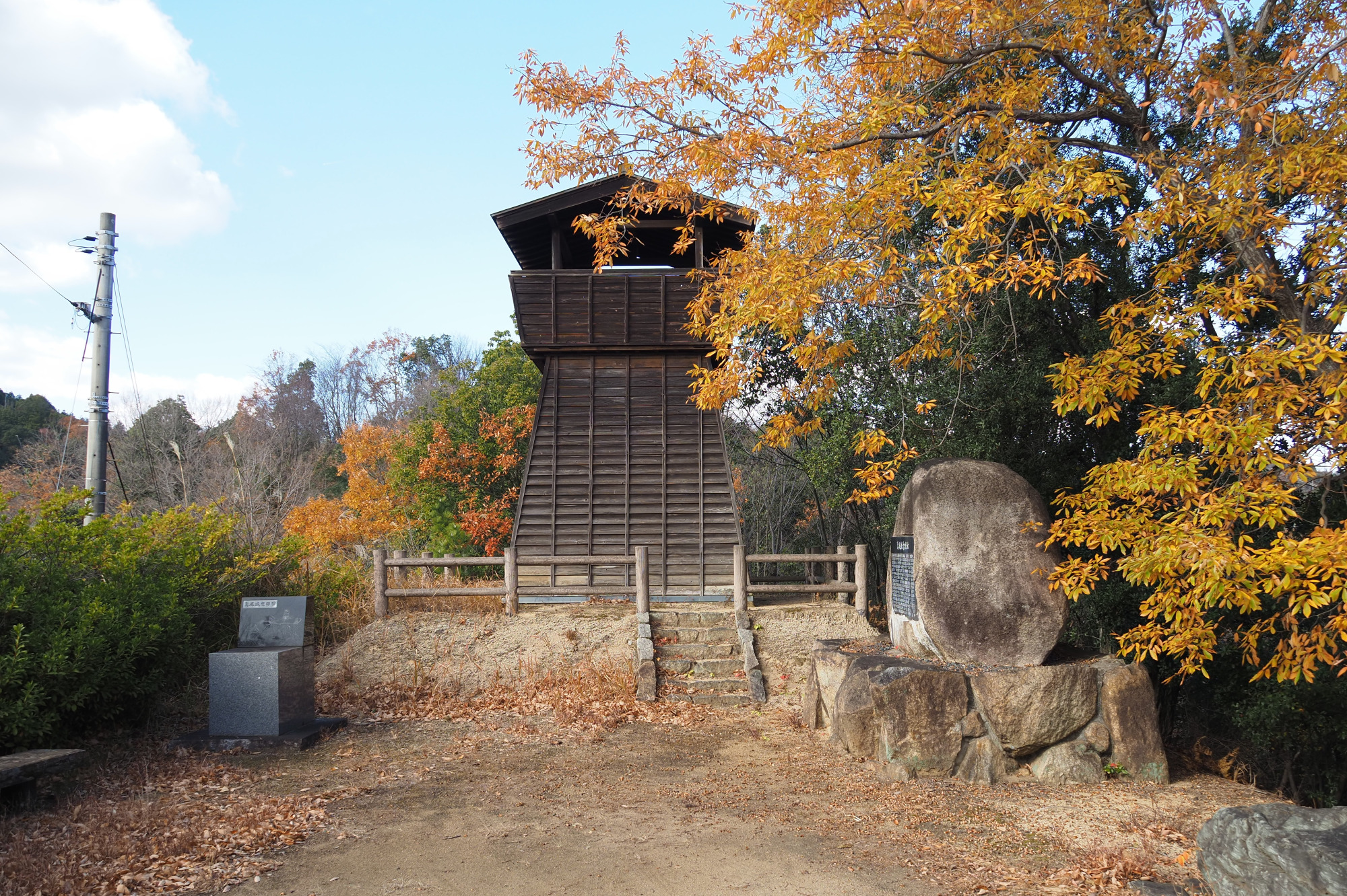 近くには「鳶尾城跡」の櫓もあり、歴史ロマンと自然のパワーを同時に感じられる場所です。