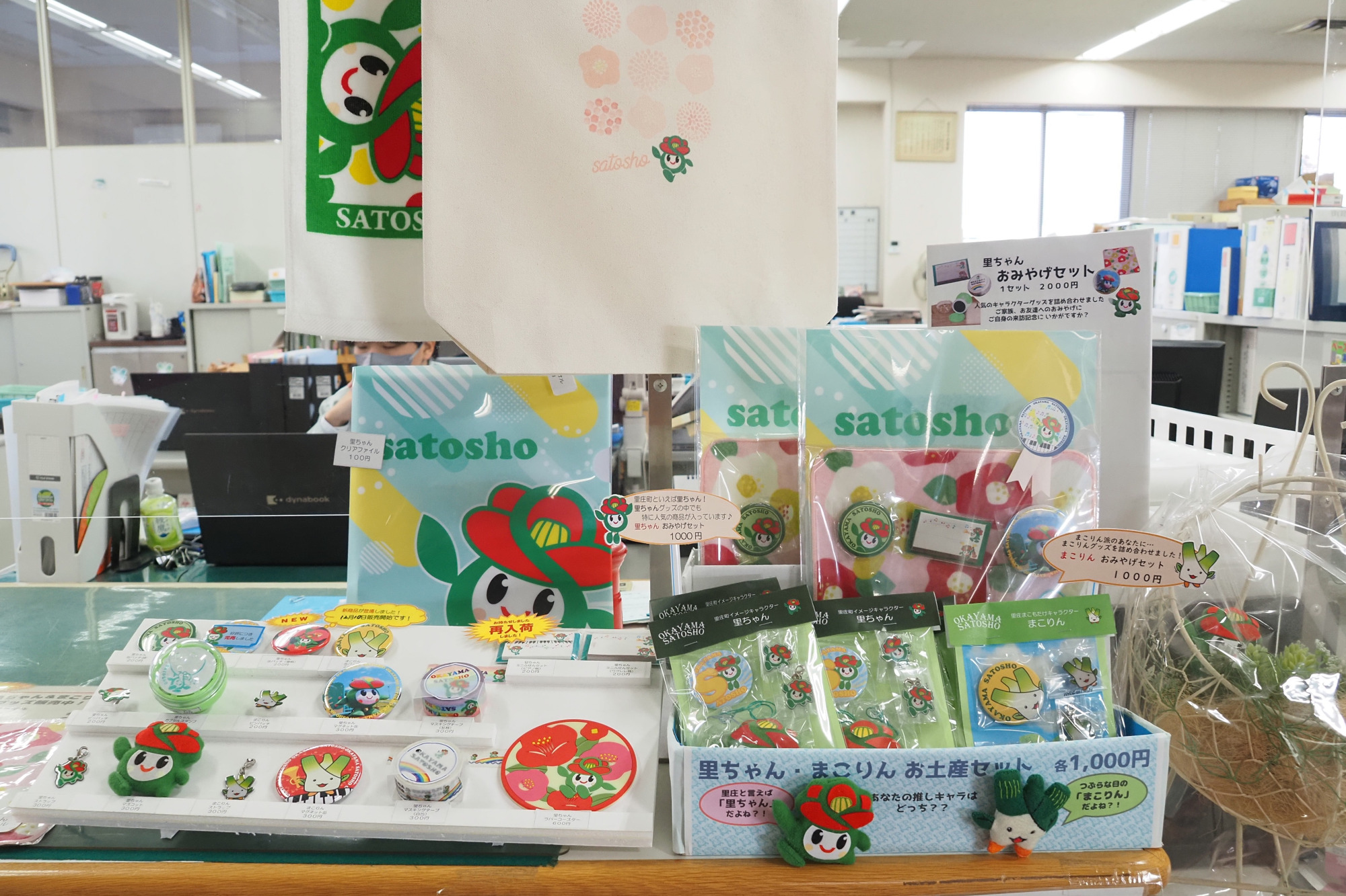 最後にご紹介するのは、意外な穴場スポット「里庄町役場」。実はこちら、里庄町の愛らしいイメージキャラクター「里ちゃん」「まこりん」の公式グッズが購入できる場所なのです。