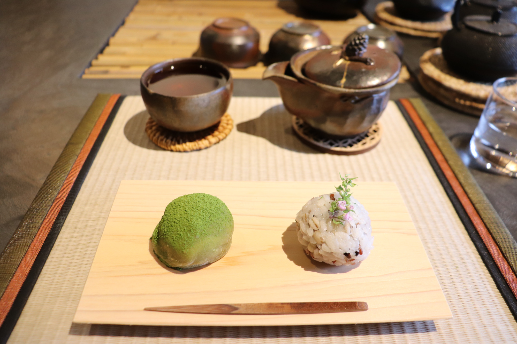 お店の定番の「県産七穀米のおはぎ」と季節限定の「和栗と抹茶の大福」を和紅茶と頂きました。「県産七穀米のおはぎ」の七穀米は、ビタミン、ミネラル、ポリフェノール、食物繊維が含まれていて、腸内環境を整えて、糖質の吸収を抑えたり、コレステロールの排出を促したりする効果があります。北海道産の粒あんには、ポリフェノールが豊富で、細胞の老化の原因となる活性酸素を抑制する抗酸化作用があり、鉄分も豊富に含んでいるので貧血予防にも効果的です。良質の素材をつかった身体に優しいお菓子です。