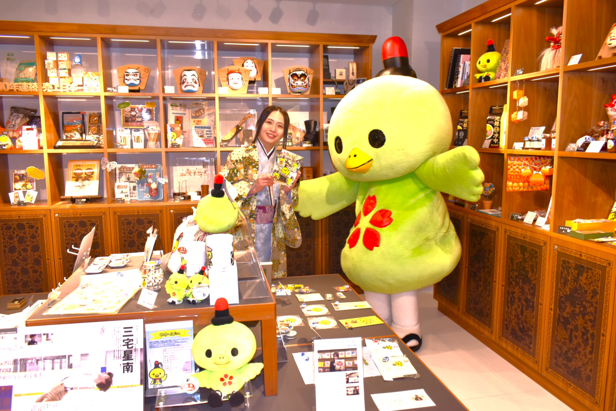 「やかげ町家交流館」は築80年を超える古民家を活かした観光交流施設で、観光案内、土産物の販売、矢掛町や町家交流館のイベント情報などを提供しておる場所じゃ。毎週日曜日の午後には様々なイベントなども開催されておる。お食事処・喫茶「やかげ茶屋」は地元産野菜などを活かしたランチが大人気で、コーヒー、デザートなども楽しむことができる(現在キッチン改修工事のためドリンク・軽食のみ。ランチ提供は2月中旬頃~)。そしてここには、やかっぴー殿のグッズがぎょうさん(たくさん)売られておるんじゃ。姫たちは可愛いやかっぴーグッズに大はしゃぎじゃ!