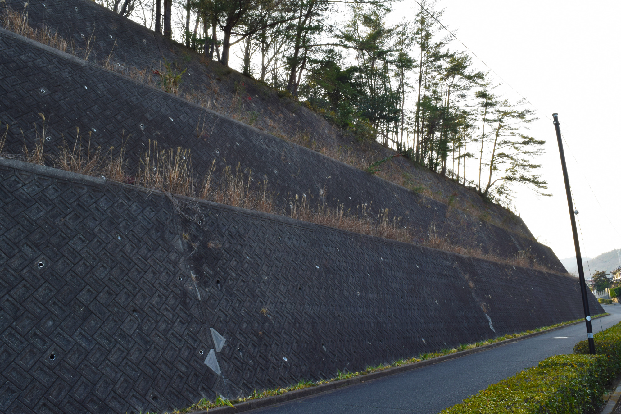 造成工事で古墳が消滅したと聞くと「ひどい…」と思う方もいるかもしれませんが、高度経済成長期の日本ではめずらしいことではありませんでした。限られた時間や予算のなかで、どこまで埋蔵文化財を守れるか、当時の人々はギリギリの選択を迫られたはずです。人によって感じ方は異なるかもしれませんが、私は遺跡を保存するために累々と築かれた擁壁を見て、山陽団地の開発に携わった人たちは、あの時代にできる最善を尽くしたのではないかと感じました。