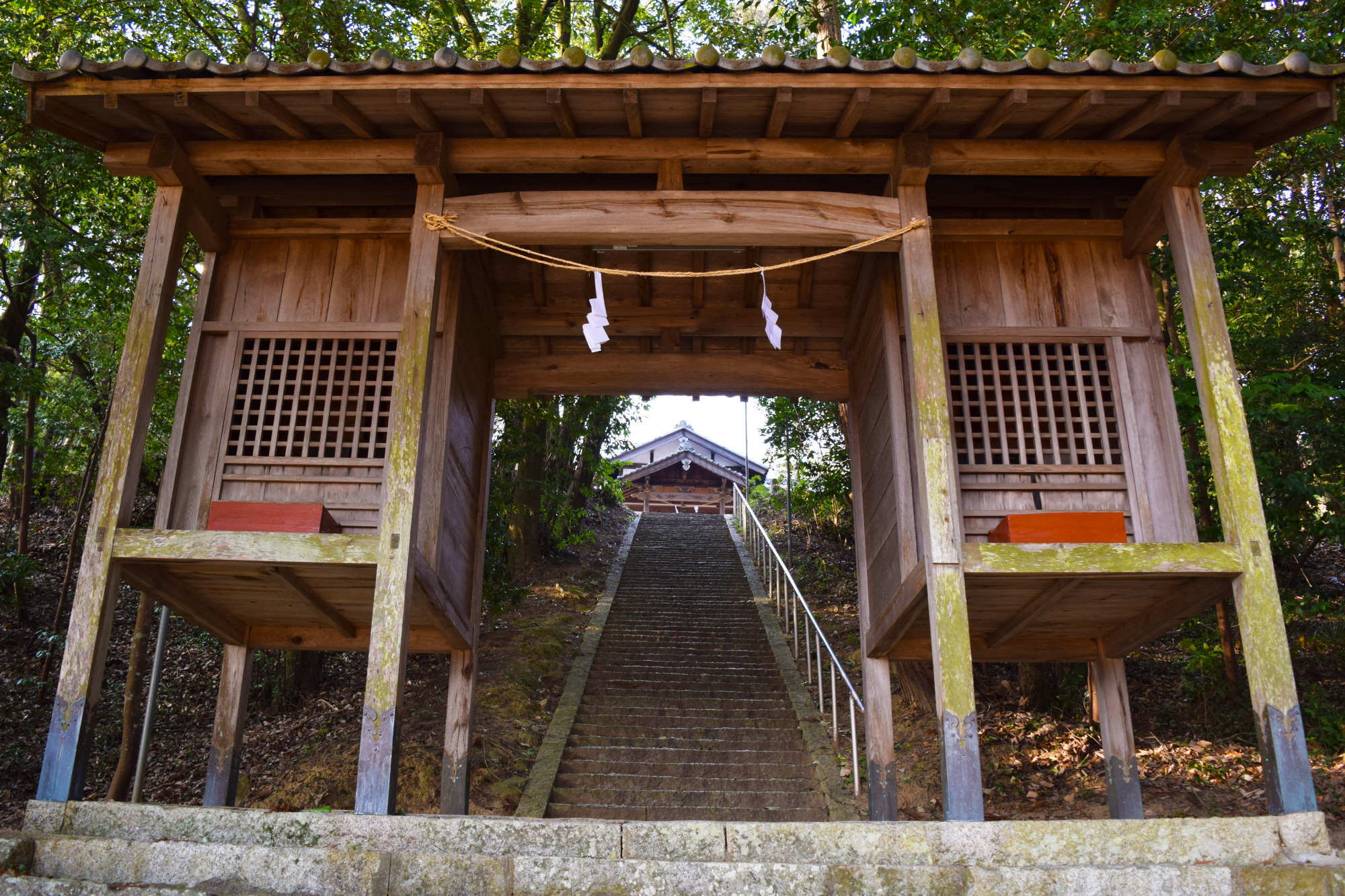 のちに「素戔嗚尊(すさのおのみこと)」と「櫛名田比売」の子孫にあたる「大国主命(おおくにぬしのみこと)」もご祭神に加えられています。素戔嗚尊がヤマタノオロチを退治したあとに剣を清めた「血洗の滝」と、その剣が奉安されていた「石上布都魂神社」も赤磐市内にあります。