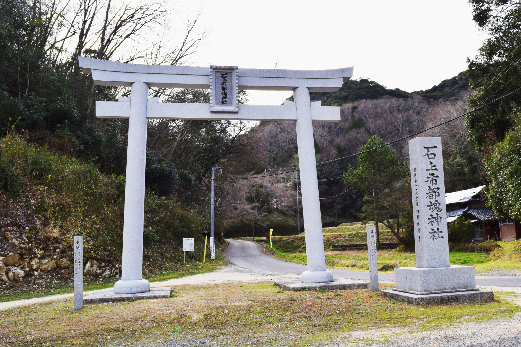 「石上布都魂神社」は「いそのかみふつみたまじんじゃ」と読みます。知る人ぞ知る非常に興味深い由緒をもつ神社で、こちらも式内社です。『日本書紀』には、素戔嗚尊(すさのおのみこと)がヤマタノオロチを退治した剣は吉備にあると記されていて、それは「石上布都魂神社」のことだと言われています。剣はその後、現在の奈良県にある「石上神宮(いそのかみじんぐう)」へ移されましたが、明治時代に「石上神宮」の禁足地が発掘されると伝承の通りの剣が出土したそうです。