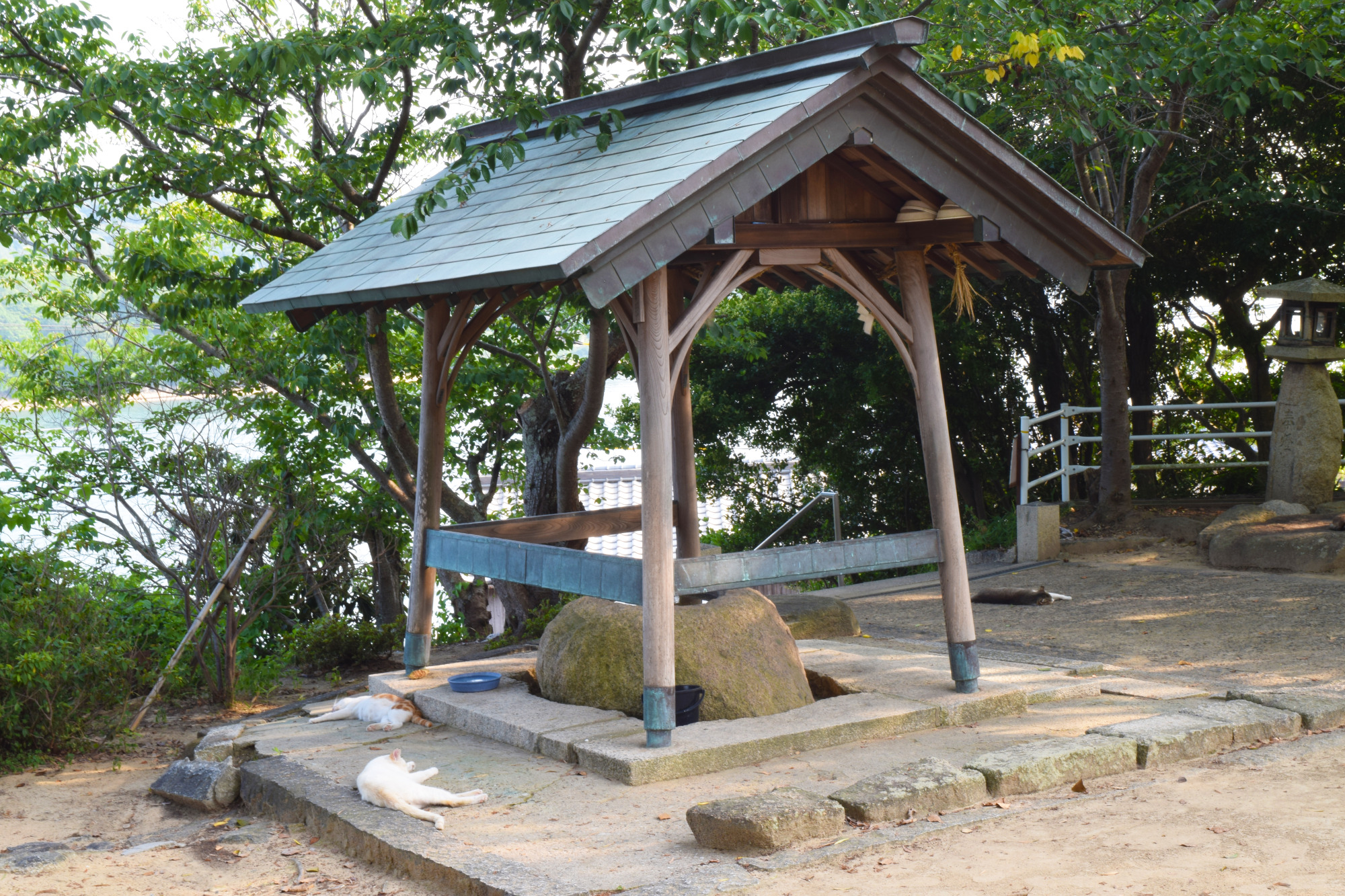 「五香宮」は猫がたくさんいることでも知られています。ここでは、唐琴の瀬戸に響く潮騒を聴きながら、のんびりとした時間を過ごすのがおすすめです。
