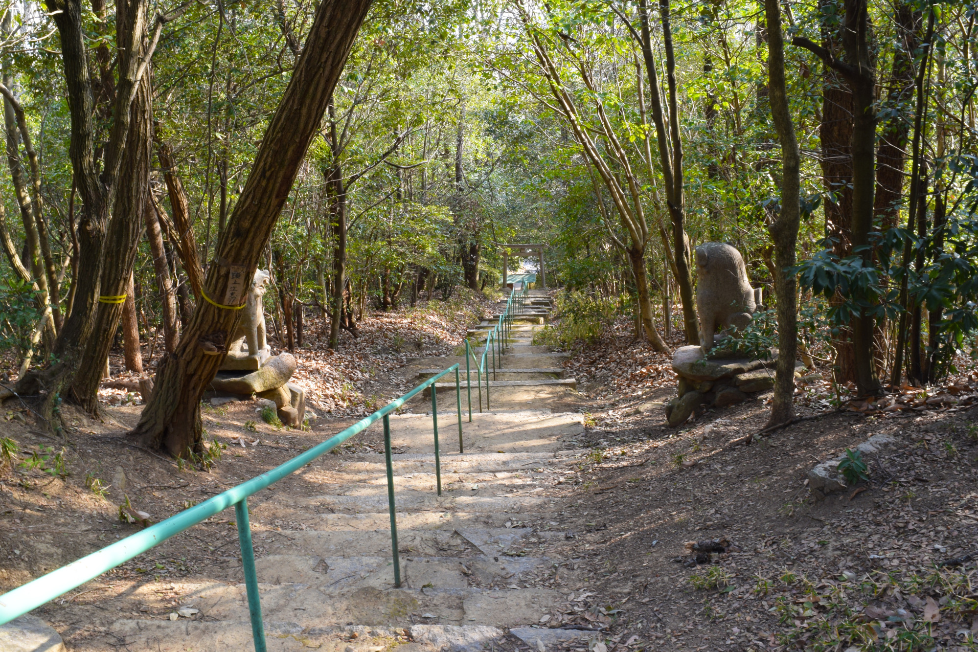 岡山市の市街地中心部を見渡せる丘陵の上に鎮座していて、周辺は住宅地や学校になっています。麓から想像したより境内は広くて明るく、とてもきれいに整備されていました。地元の方々によって、大切に管理されていることがわかりますね。