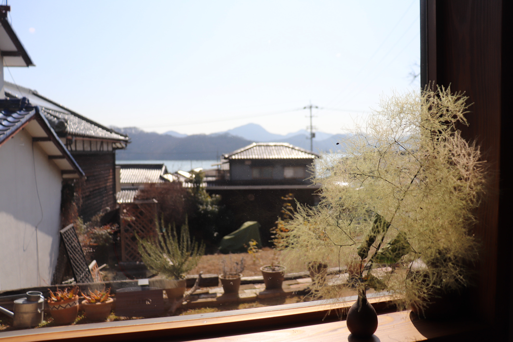 南向きの窓辺にあるカウンター席には、ぽかぽかとした日が差し込み、太陽の光でキラキラ輝く瀬戸内海が望めます。大きな窓が額縁のようでとても素敵な光景です。