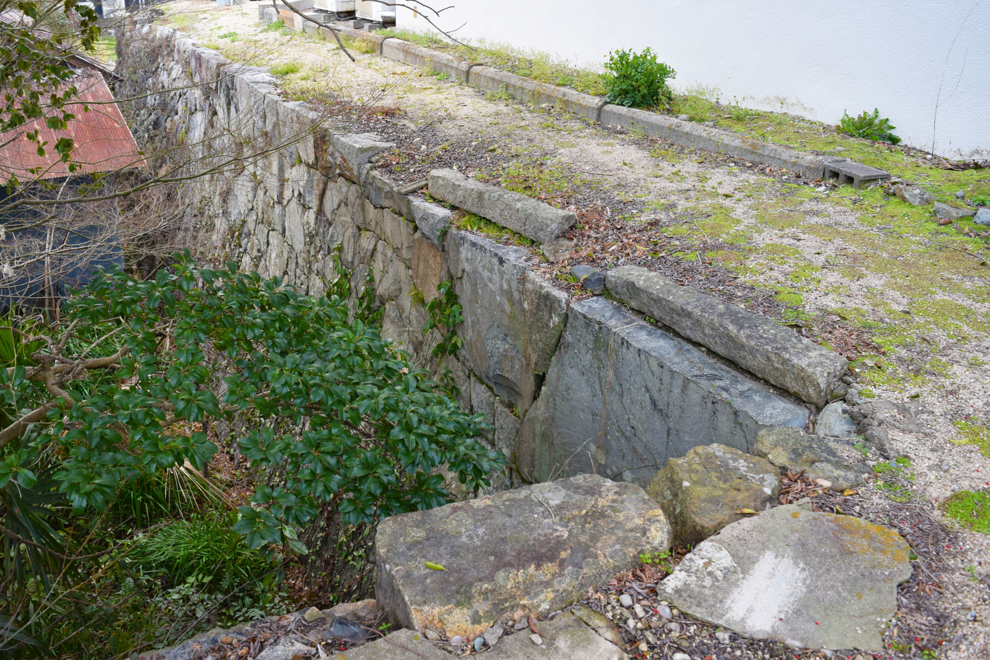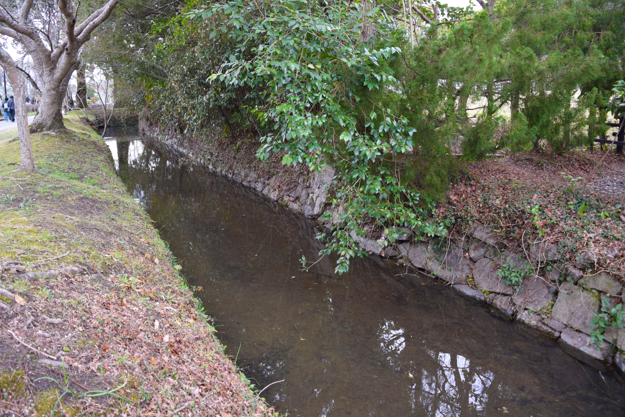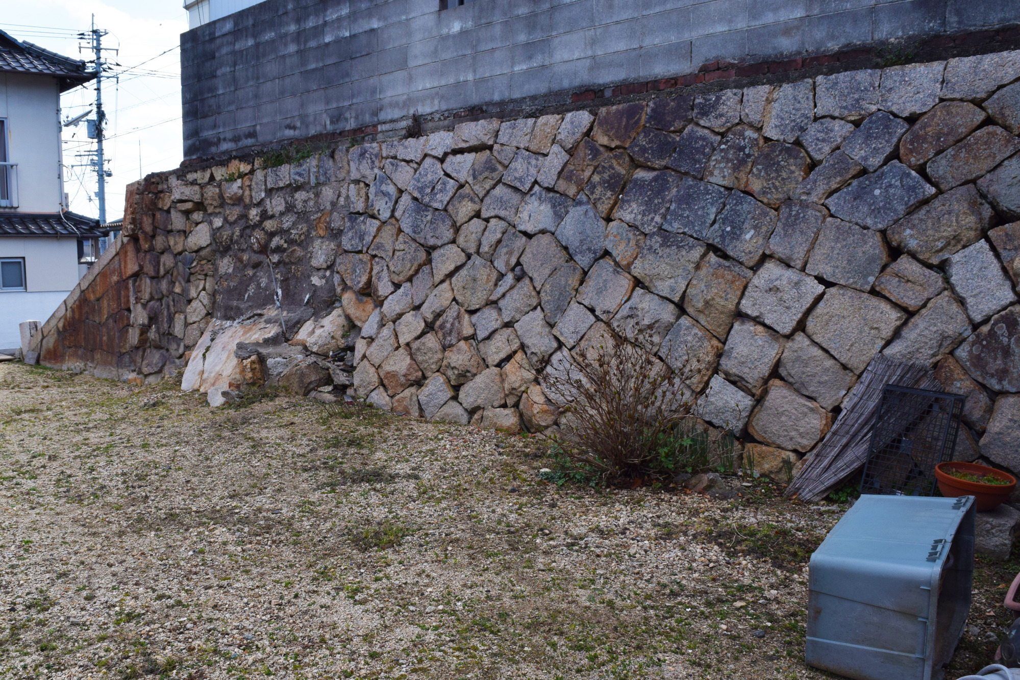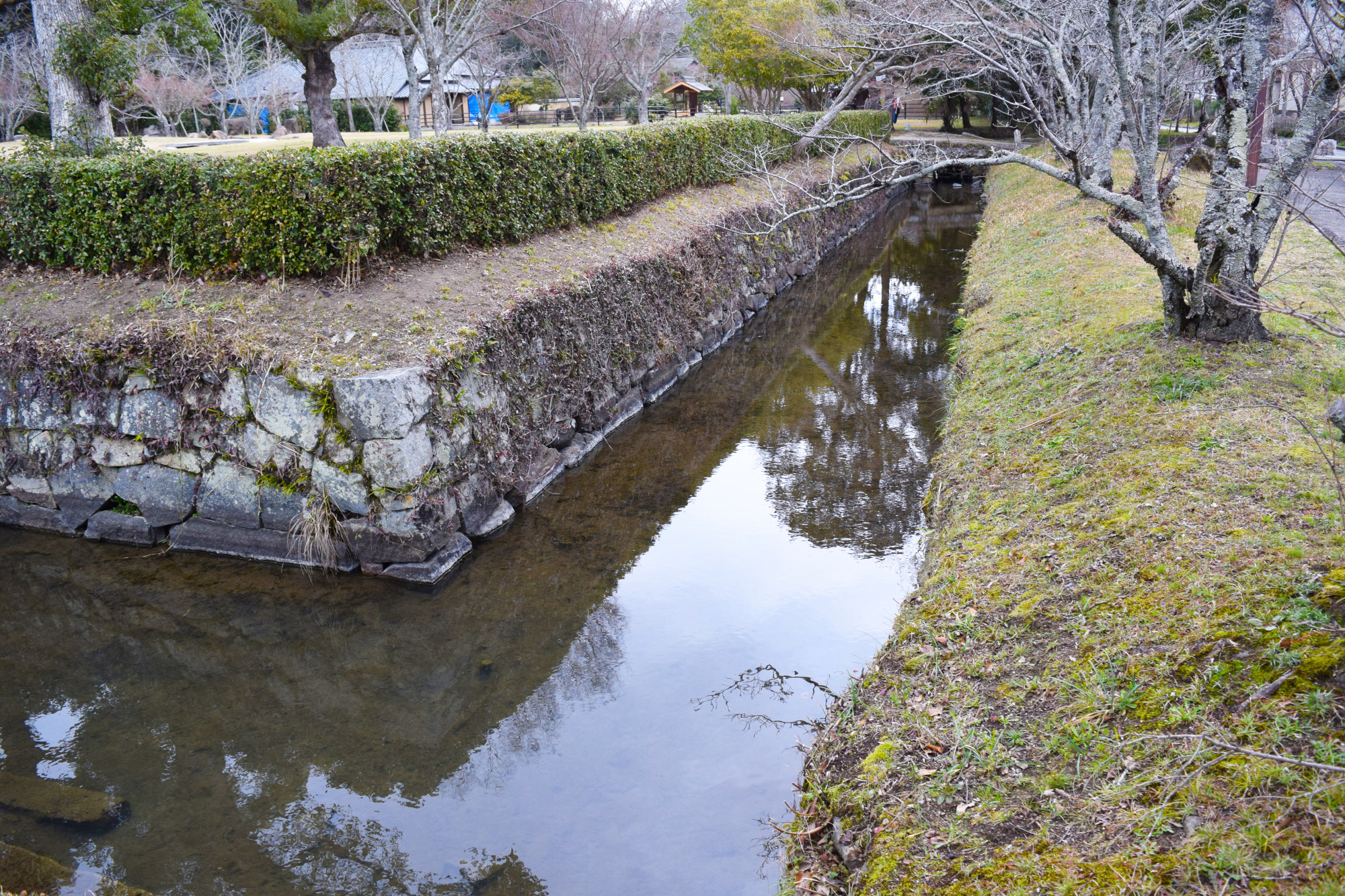 「撫川陣屋」は正確には「撫川知行所」なのですが、現在では「撫川城跡」と呼ばれています。確かに、城と呼びたくなるほど広い水堀と野面積みの立派な石垣が残されていますが、戸川氏が城を築くことはできないため、これらは旧庭瀬城の本丸の遺構ではないかと考えられます。