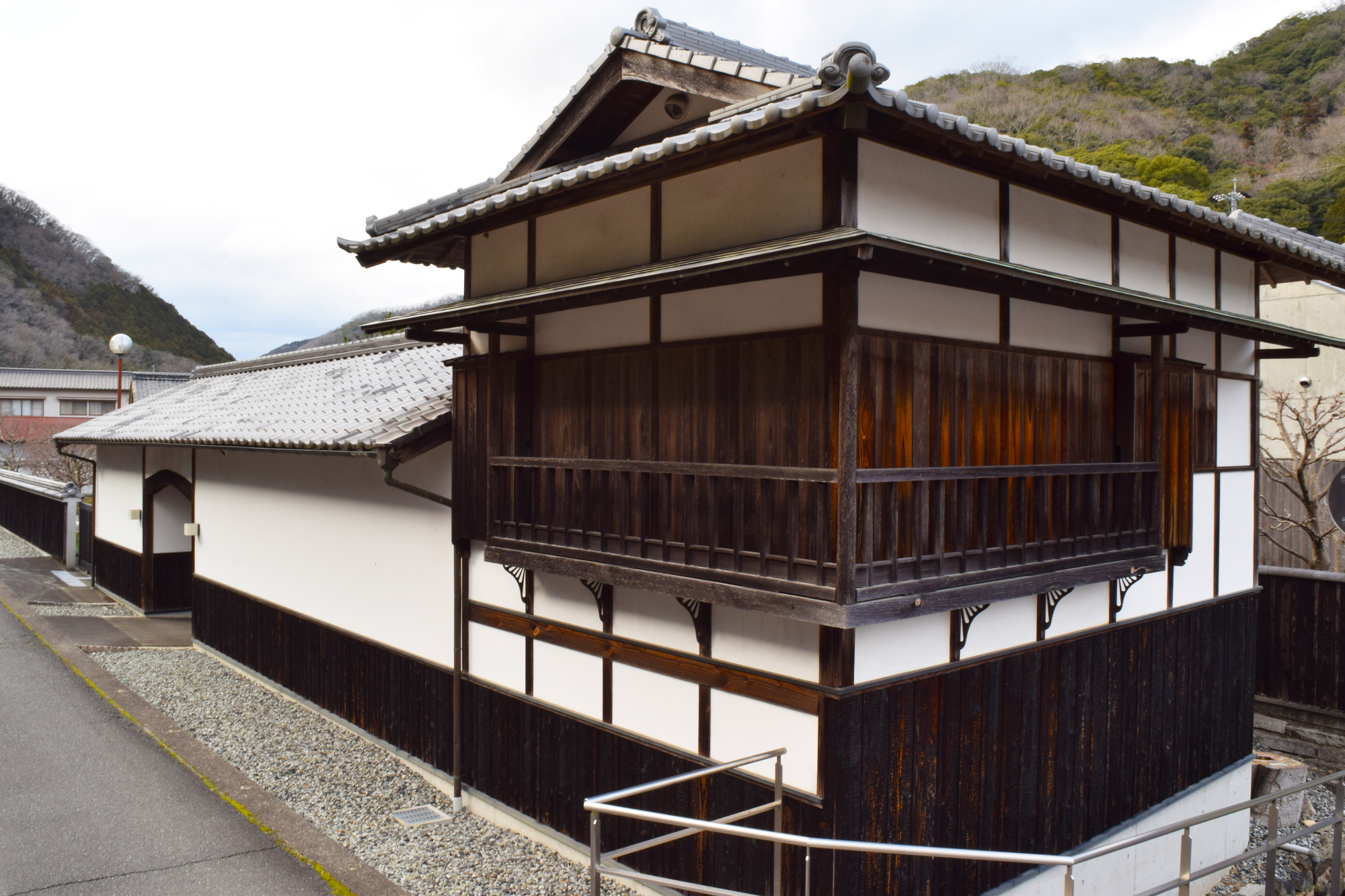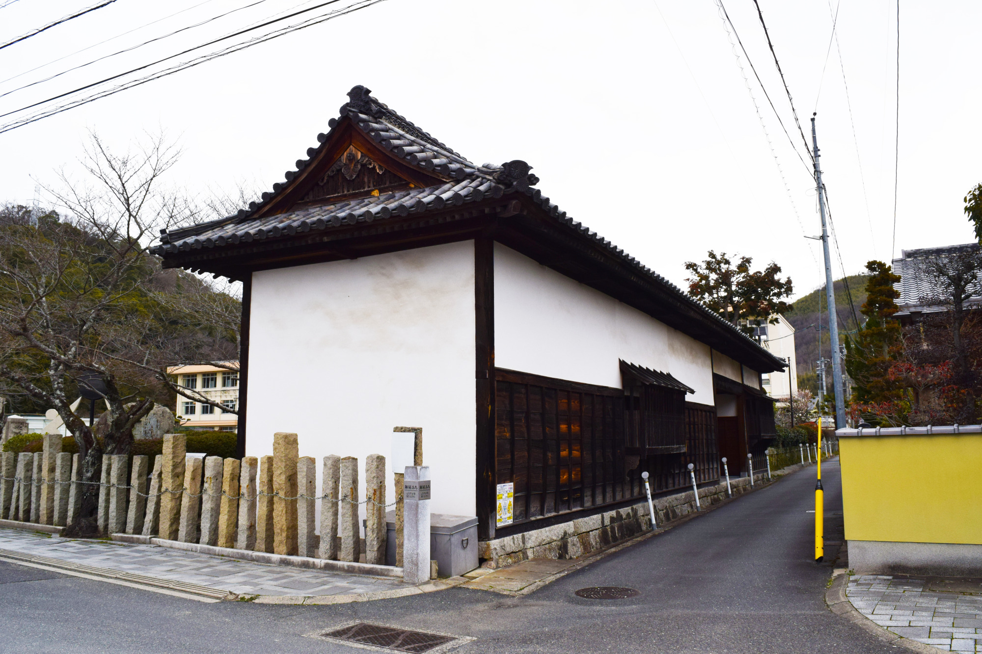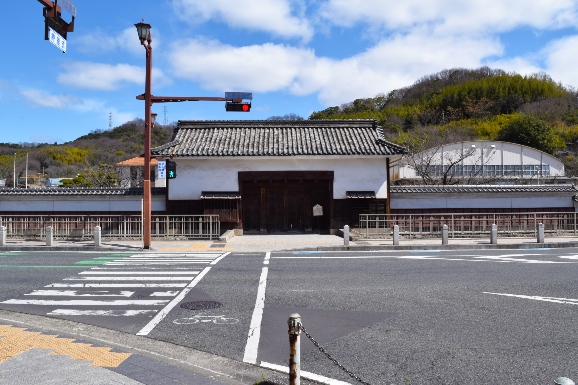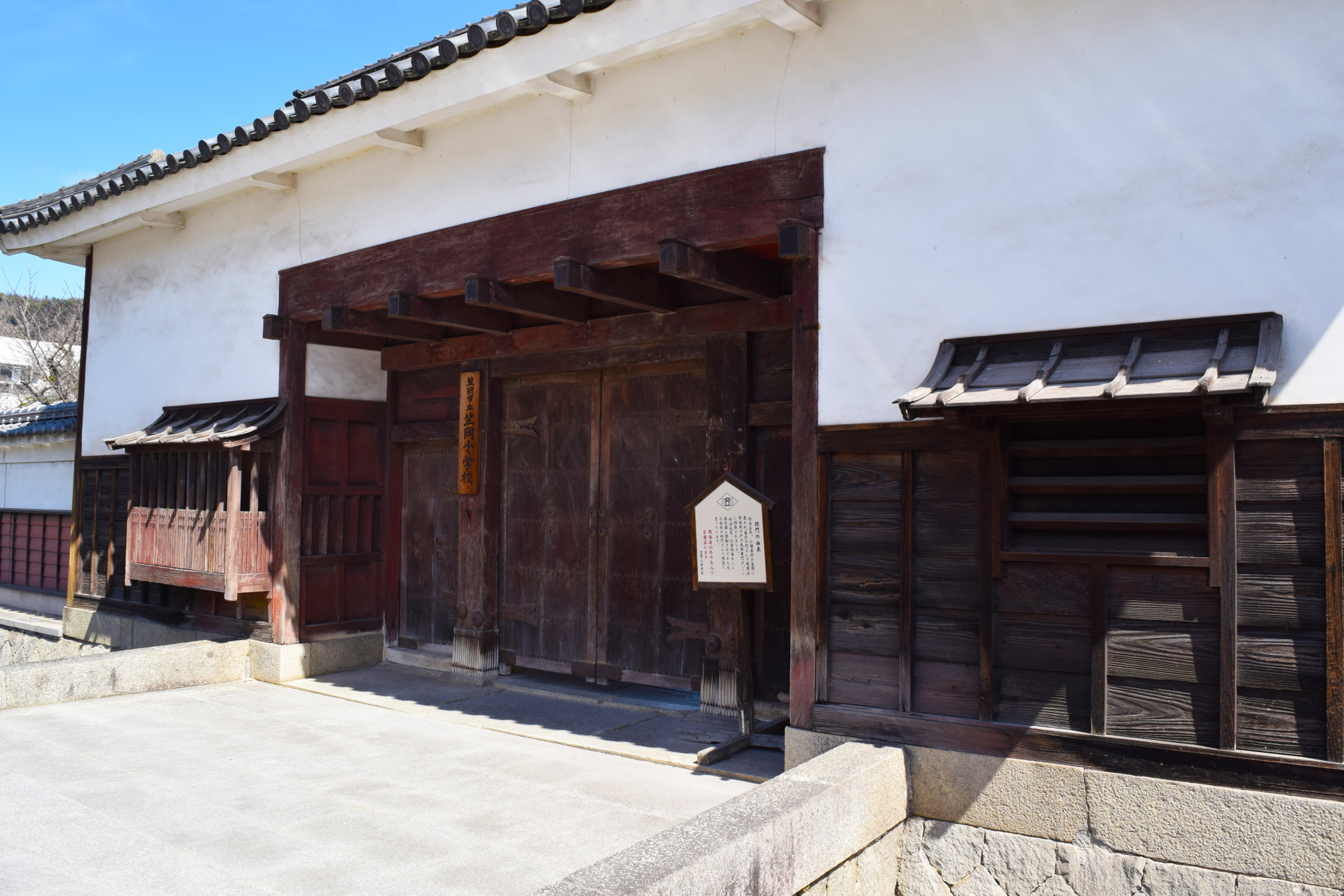 足守小学校の校庭の隅に、かつては学校の正門としても使われていたという立派な長屋門(木下権之助屋敷表門)が残されています。このほか、古い商家が立ち並ぶ昔ながらの景観がよく保たれているなど、足守の人々は伝統を大切にしているんですね。