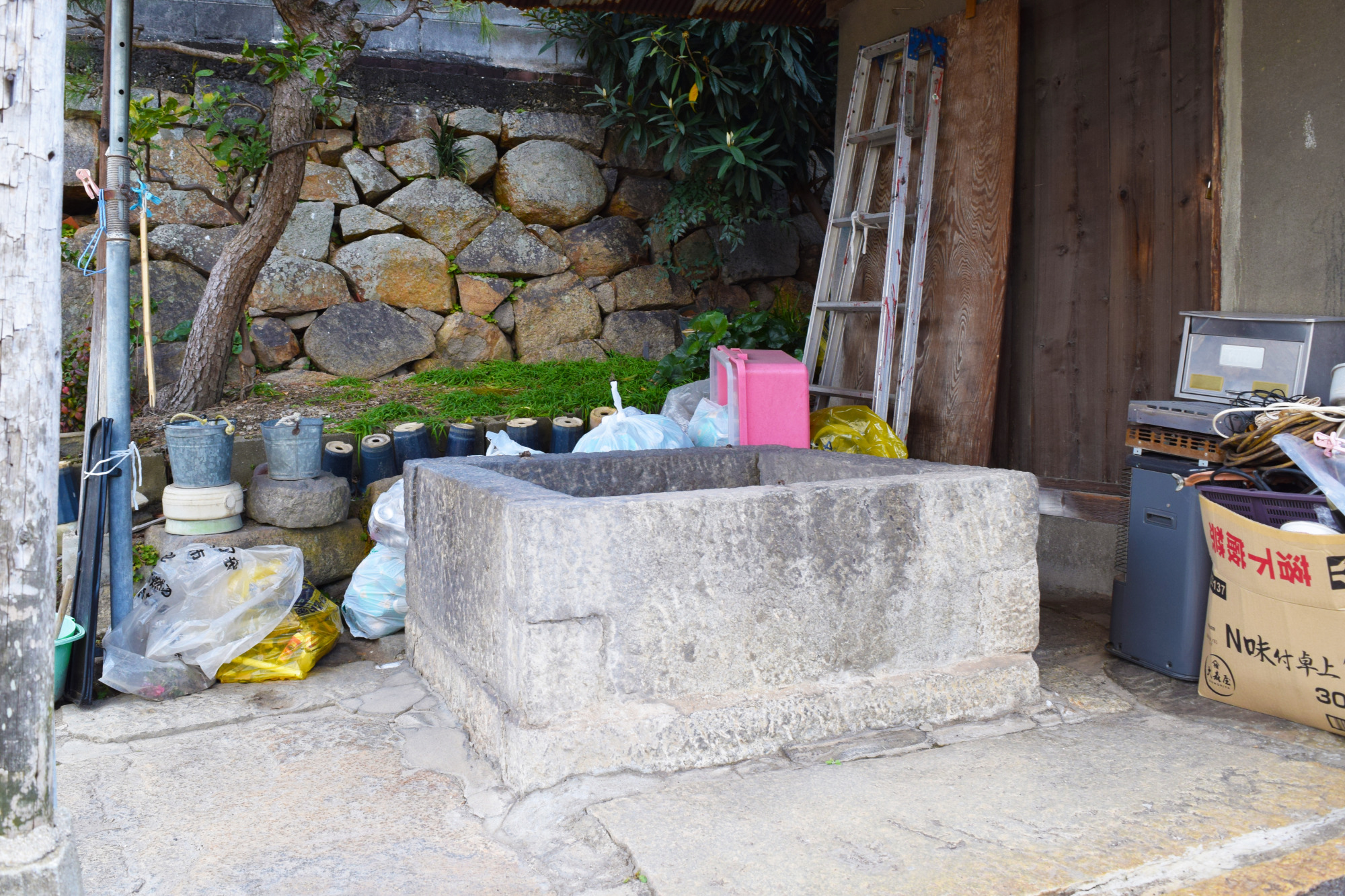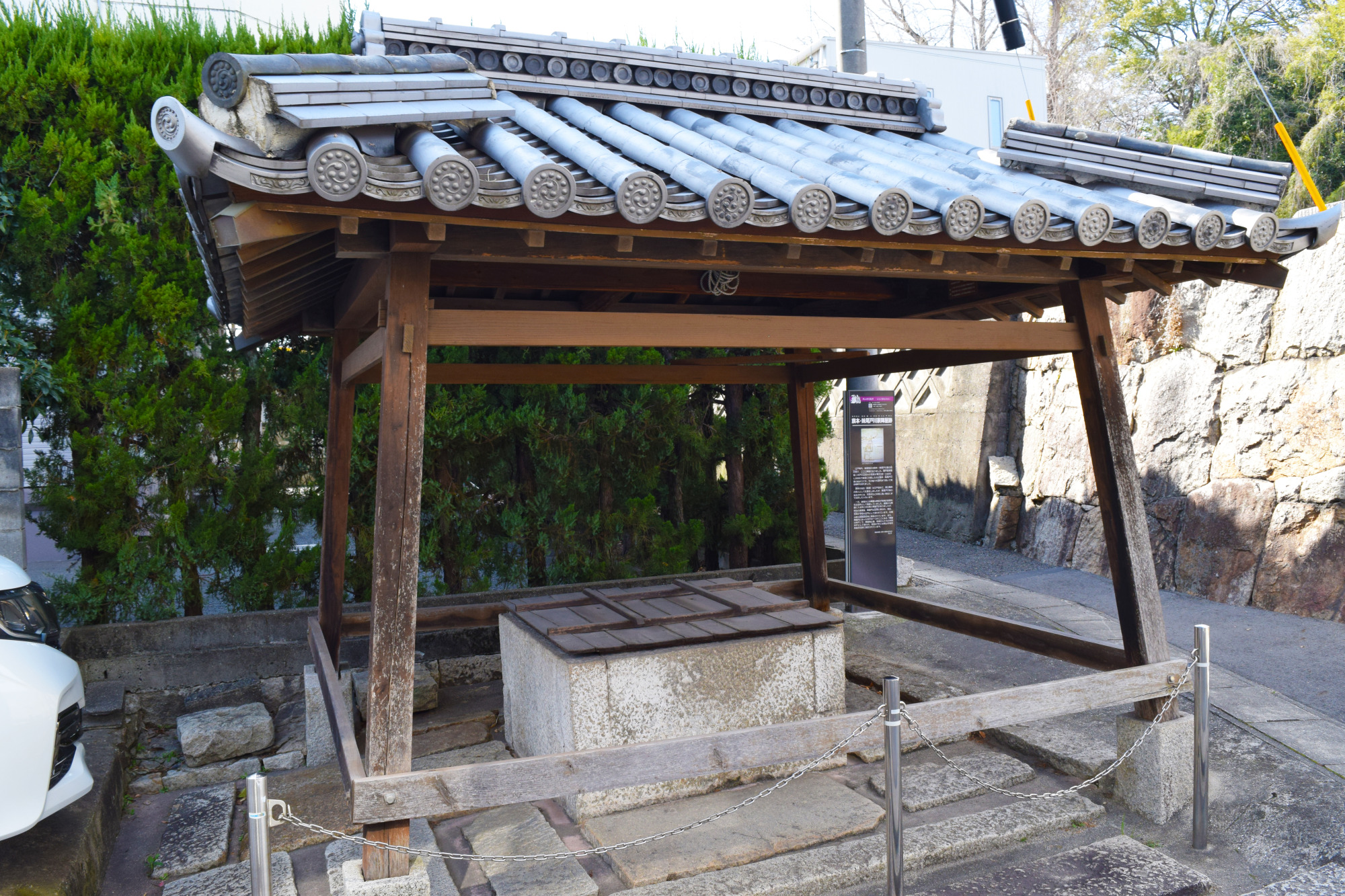 「妹尾陣屋」も戸川氏の分家のひとつです。現在は住宅街となり、わずかに石垣の一部と井戸が残されています。明治以降も陣屋跡の井戸は地元の人々から大切にされ、今も井筒と覆屋(おおいや)が現存しています。解体修理の際に見つかった墨書きから、この覆屋は1857年に建てられたものであることが分かりました。