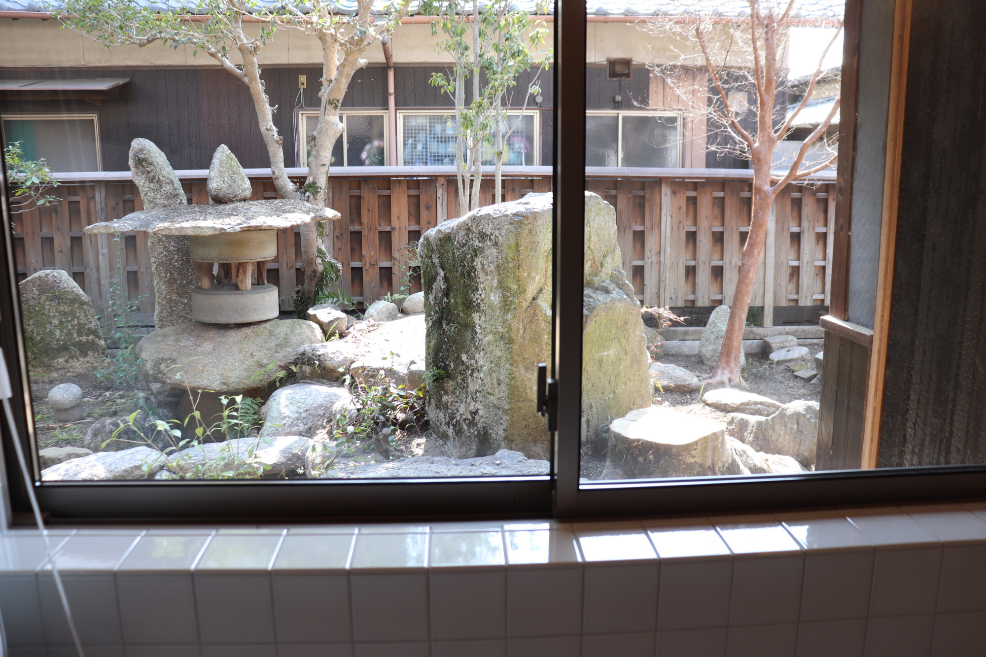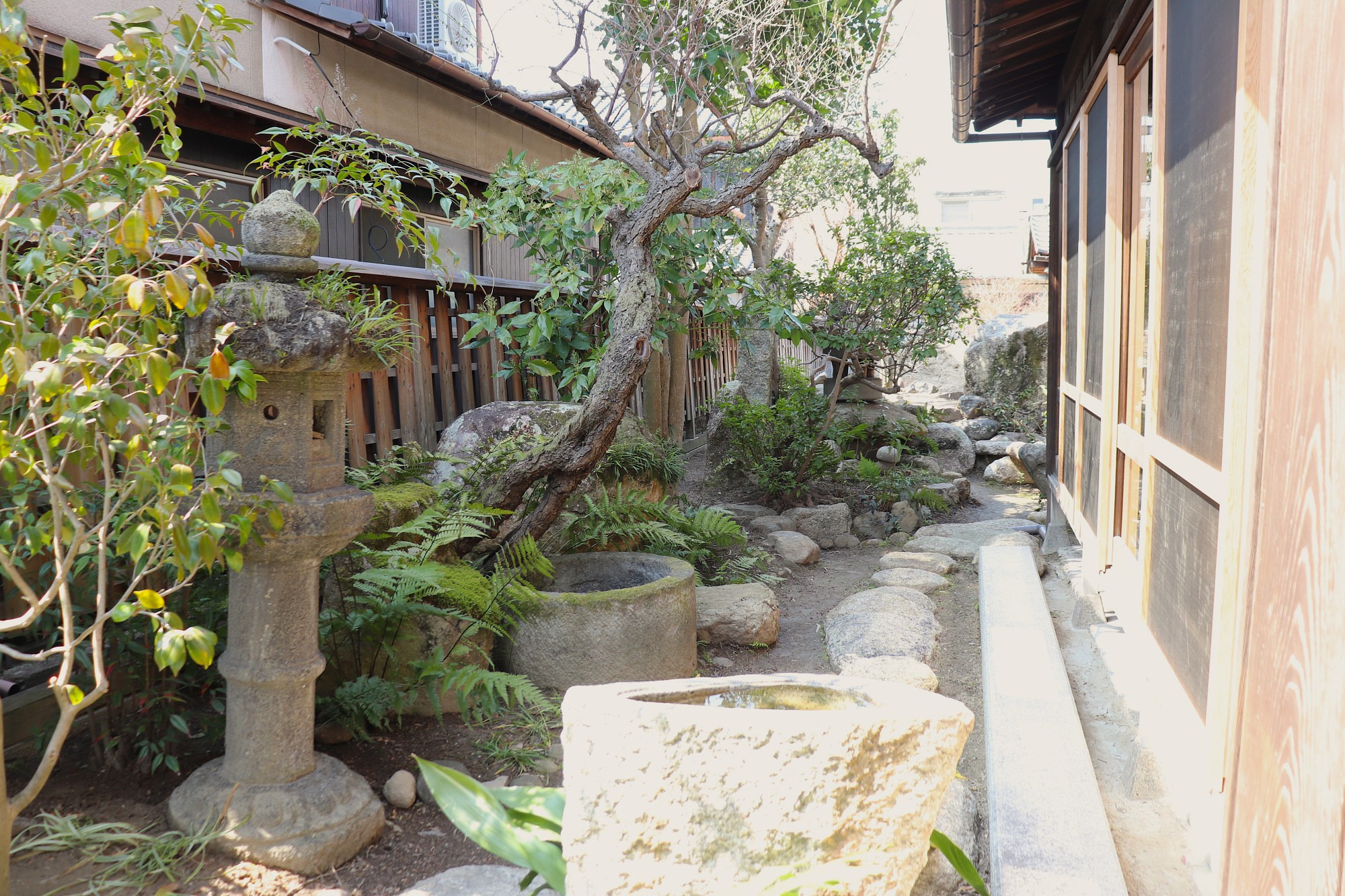 奥行きのある庭は、石で整えられた中に植物が植えられていて、四季の移ろいを感じるつくりになっています。縁側に座って眺められる庭は、滞在時の憩いの場になりそうです。