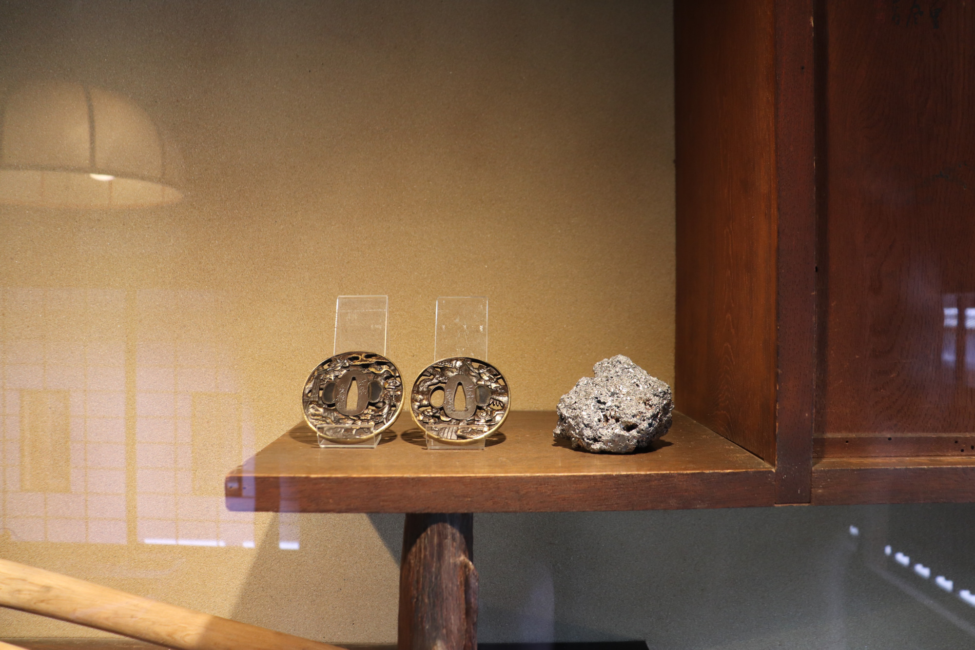 1階の飾り棚には、刀と道具が展示されていました。その長さと刀文の美しさは迫力があります。刀はかつて、武器であると同時に守りであり、祈りでもあり、人の精神を映す存在でもありました。鉄製なので手入れをしないと錆びてしまいますが、手入れを重ね、身に着け、家に置くことで、刀と共に過ごしてきた先人たち。「seppa」では、刀は観賞用ではなく、暮らしの中にあるものとして存在しています。飾り戸棚に竹が使われているのも、人の温もりと職人の技が感じられました。