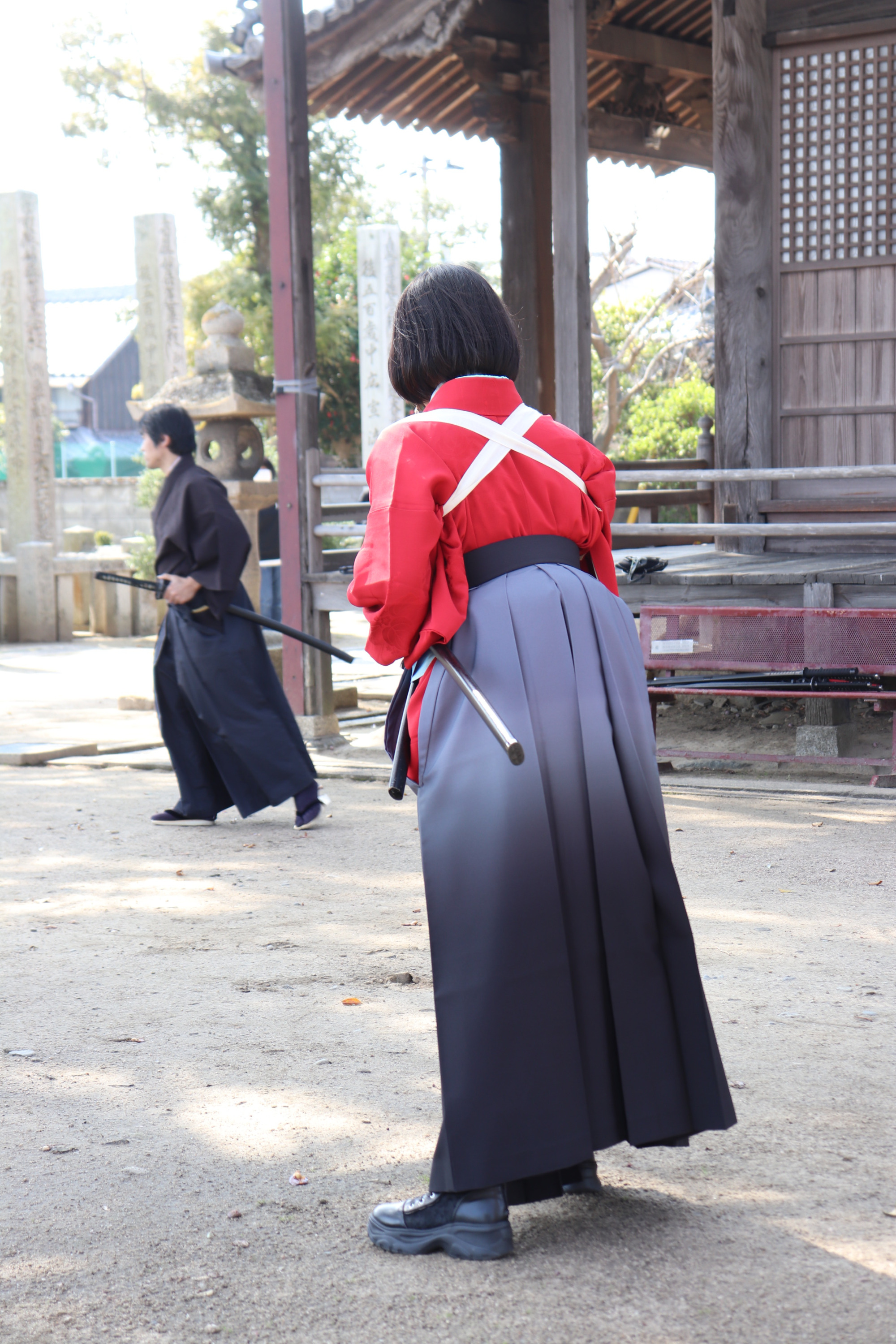 取材で訪れたプレオープンの日は、はかま着付け体験や模造刀で殺陣を体験するイベントが開催されていました。全国から参加されていて、刀剣ファンがたくさんいることにびっくりしました。皆さんお好みの着物を選び、着付けをされていました。はかまを着ると雰囲気が出て、古民家の「seppa」にもしっくりと馴染みます。