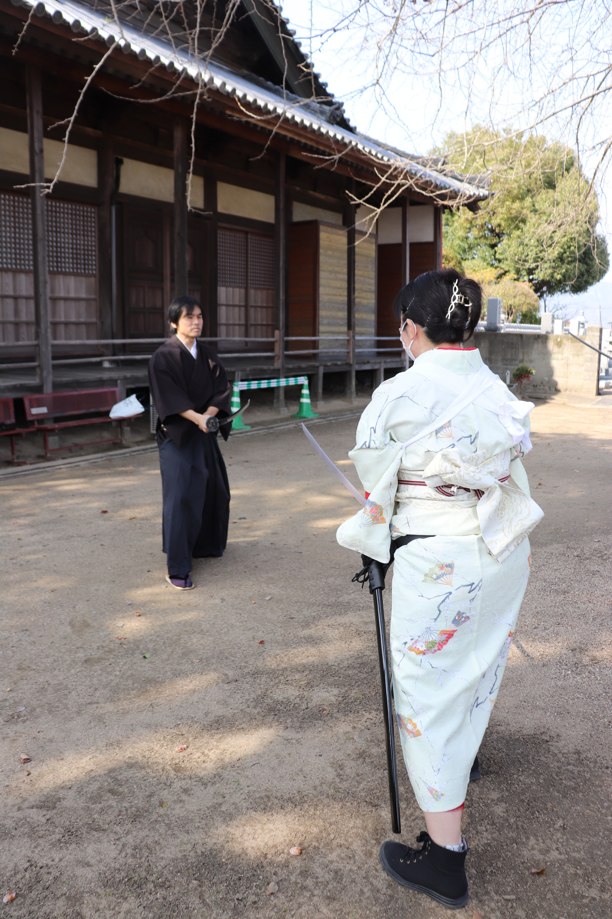 お寺で殺陣体験