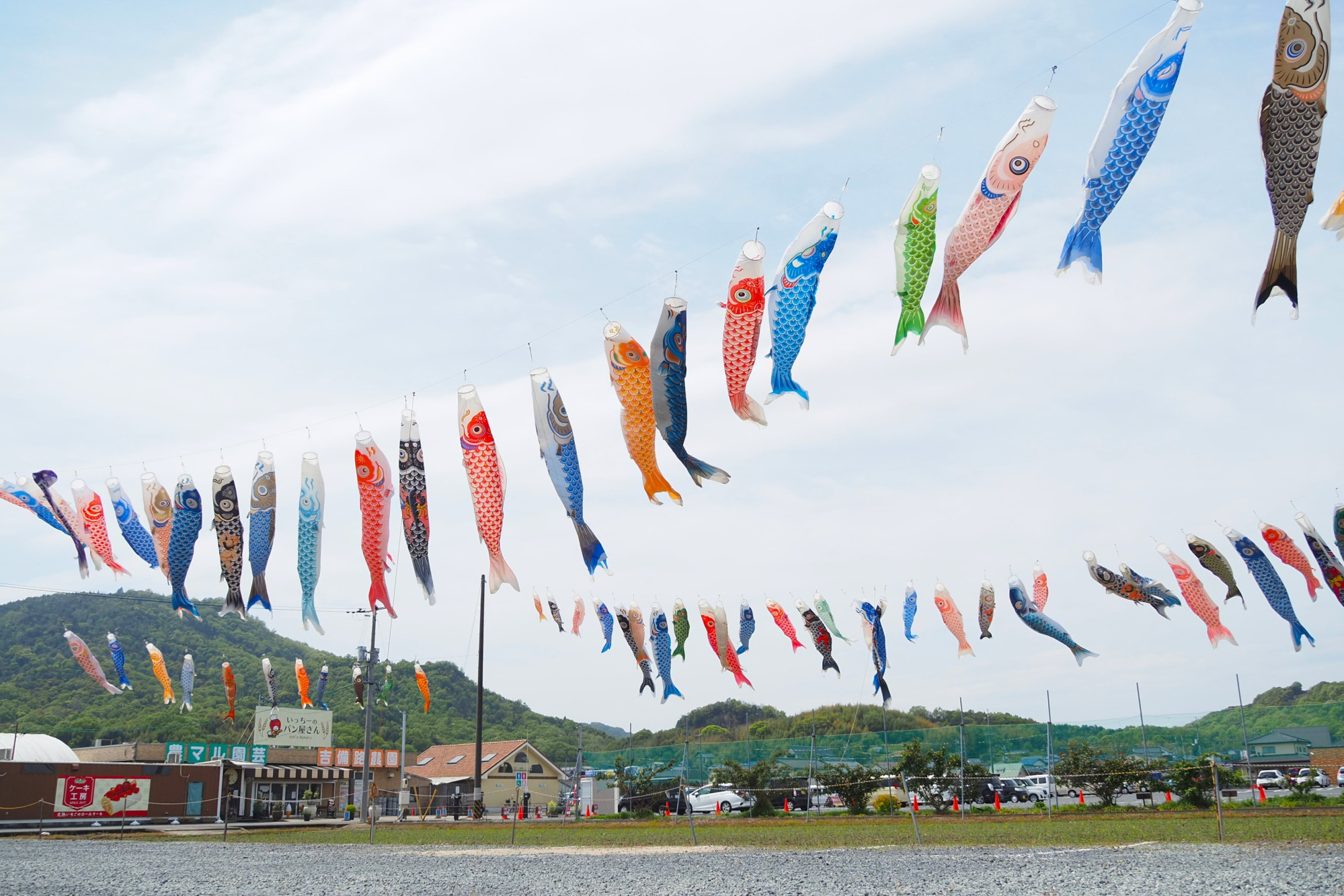 実際に訪れると、駐車場付近に色とりどりの70匹以上のこいのぼりが泳いでおり、そのスケール感に圧倒されました。