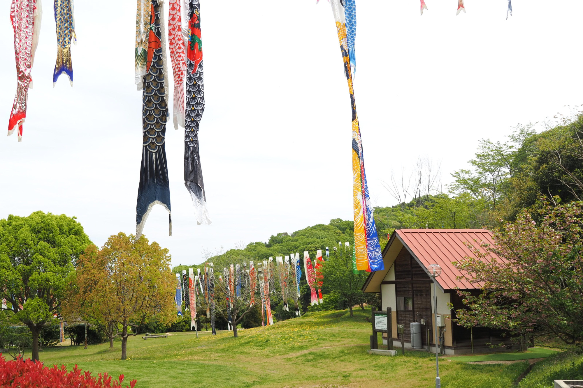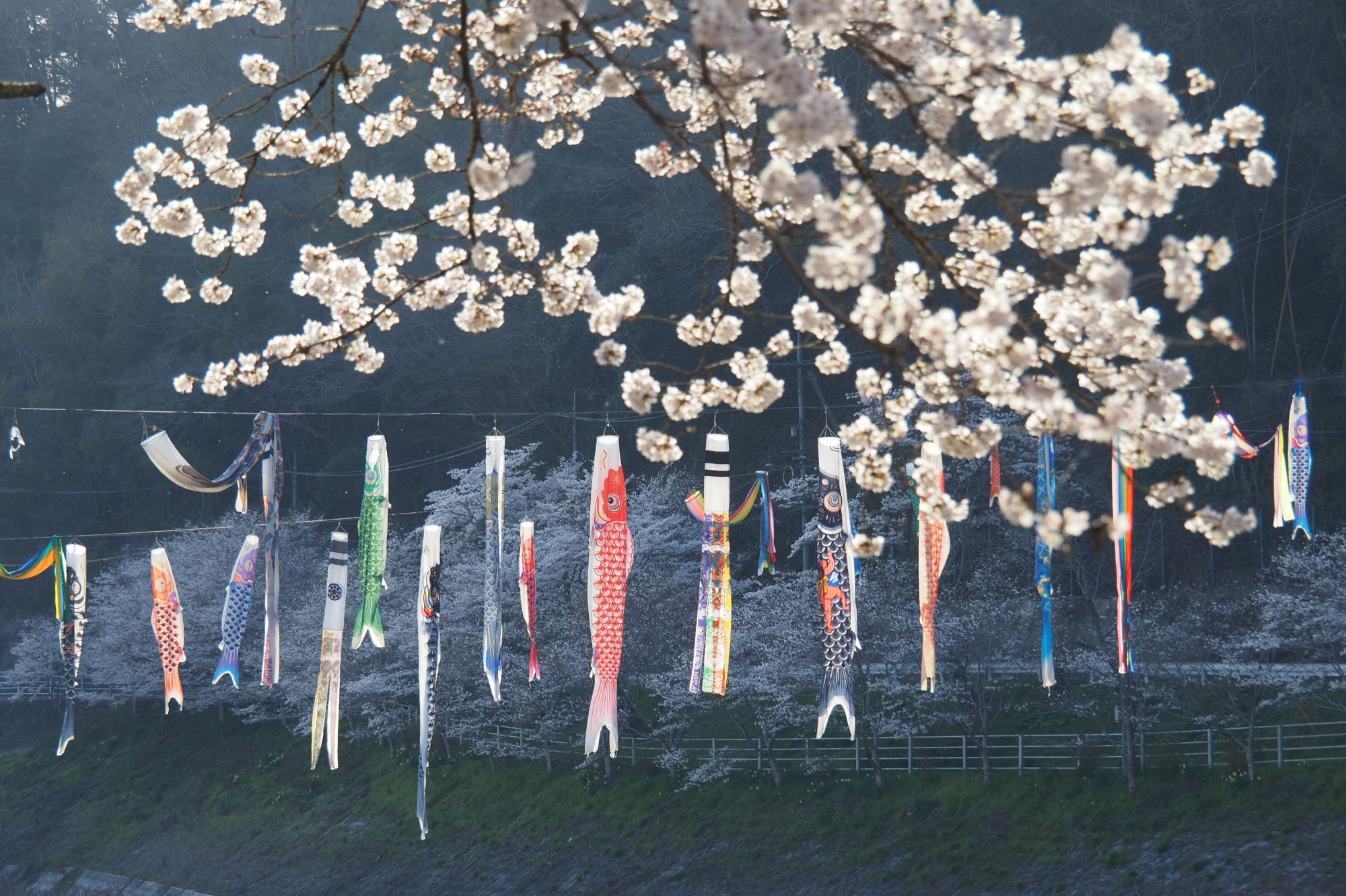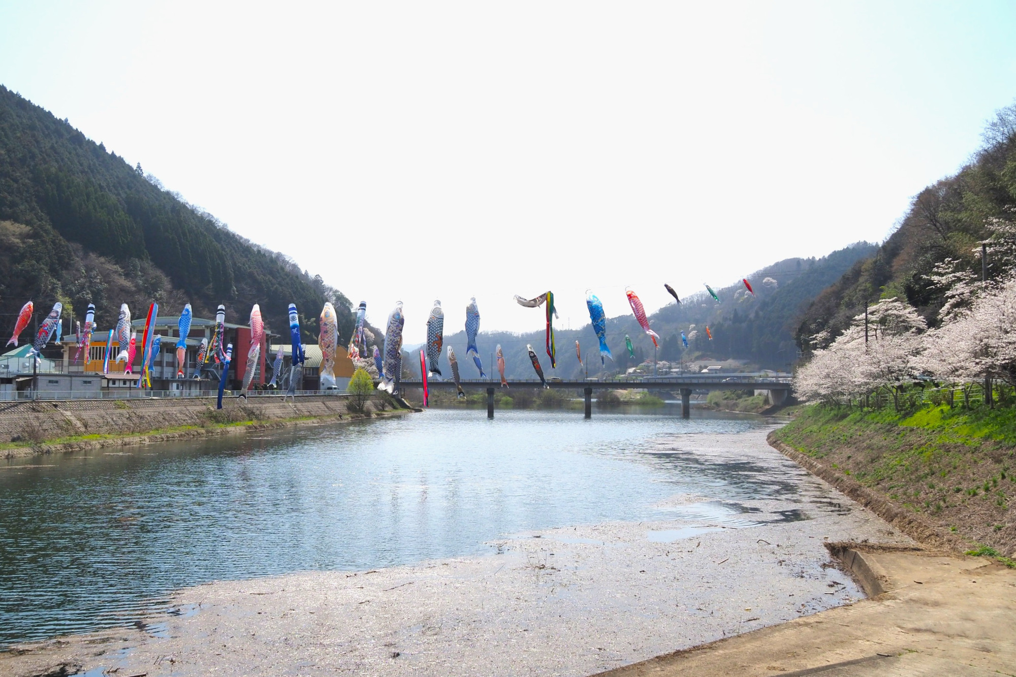 私が訪れたのは4月下旬でしたが、4月はじめの桜の季節には、桜と色鮮やかなこいのぼりのコントラストが楽しめます。