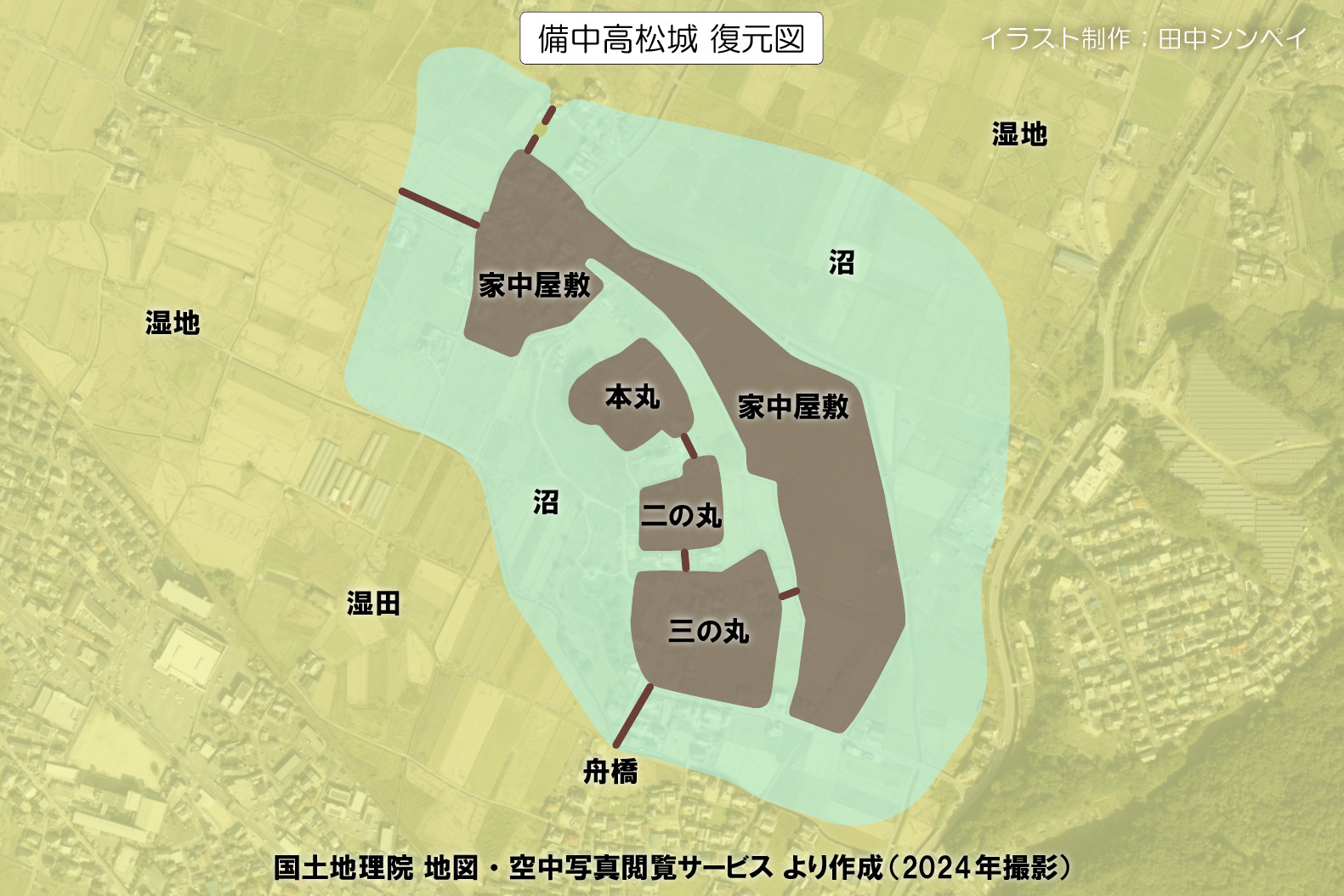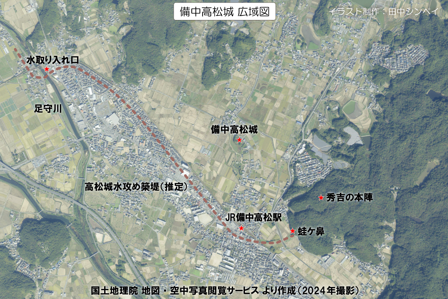 歴史的に、または地理的に少し複雑な要素を持っている観光スポットについては、俯瞰してみると分かりやすくなる場合があります。今回は航空写真を使いながら、「備中高松城跡」(岡山市)の見どころをご案内したいと思います。