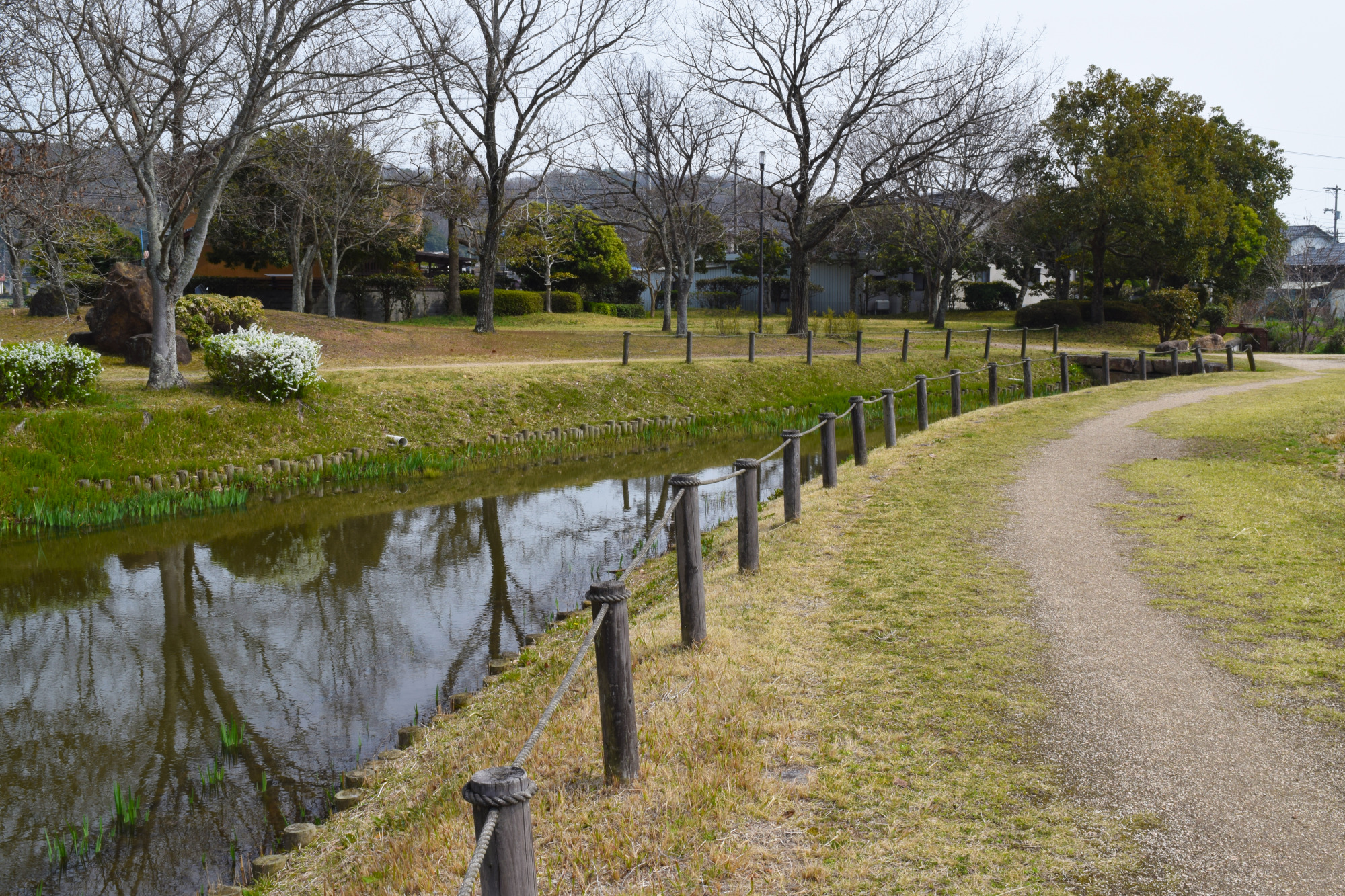 築堤の西端となる足守川のほとりには「水取入れ口」の跡があります。先ほどは12日間で大規模な堤防を完成させるなんて驚異的だと述べましたが、これを否定する説もあります。大規模な堤防が必要なのは「蛙ケ鼻」から「JR備中高松駅」あたりまでの数百メートルのみで、そこから足守川の水取入れ口までは自然な微高地だったので築堤は必要なかったというものです。もしそうだとするなら、その複雑な地形を見抜いたことが驚異的だと言えるかもしれません。時間が許すなら、地形のことを意識しながらこのあたりを散策するのも楽しいと思います。
