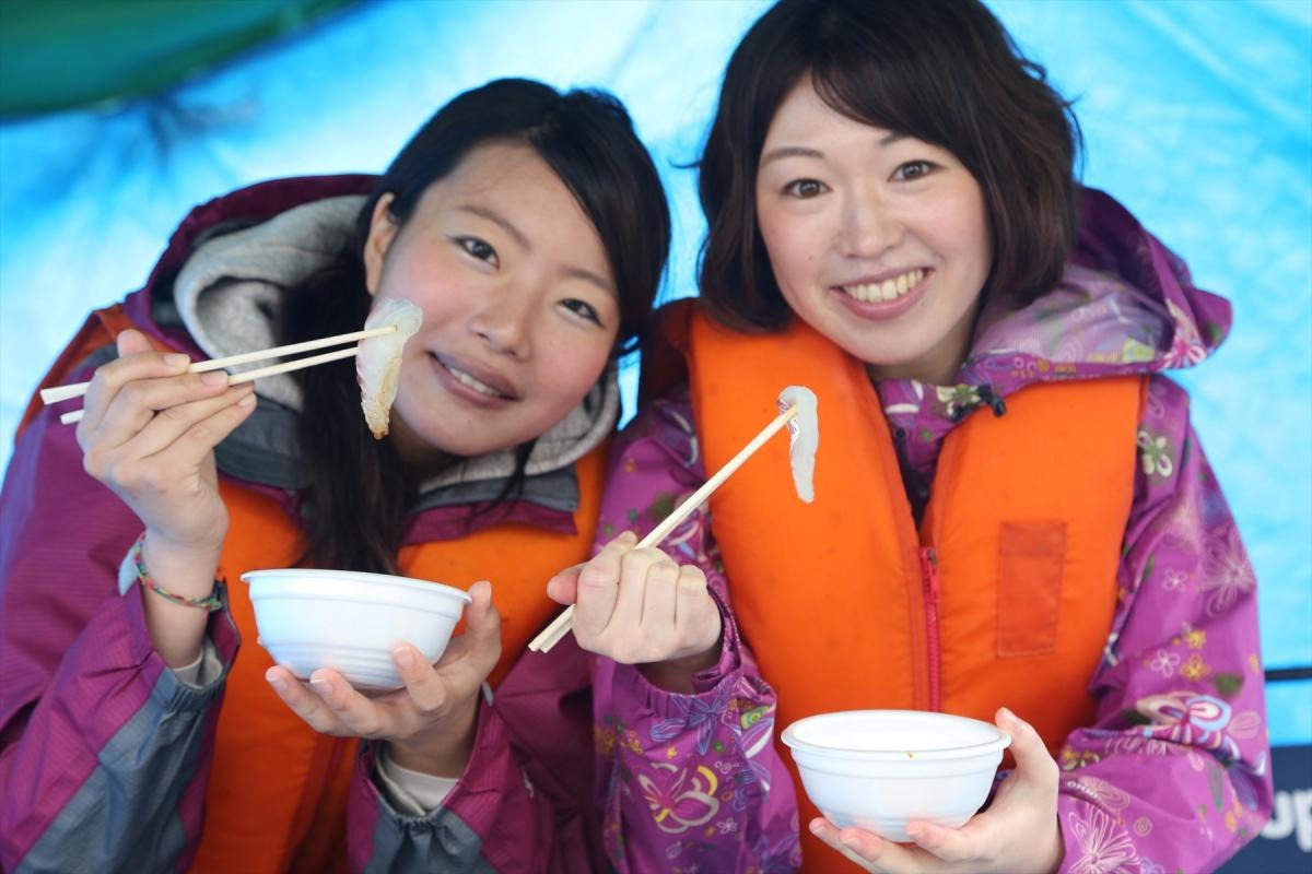 全ての魚を刺身サイズに切り分けたら、いよいよ待望のお食事タイムです!