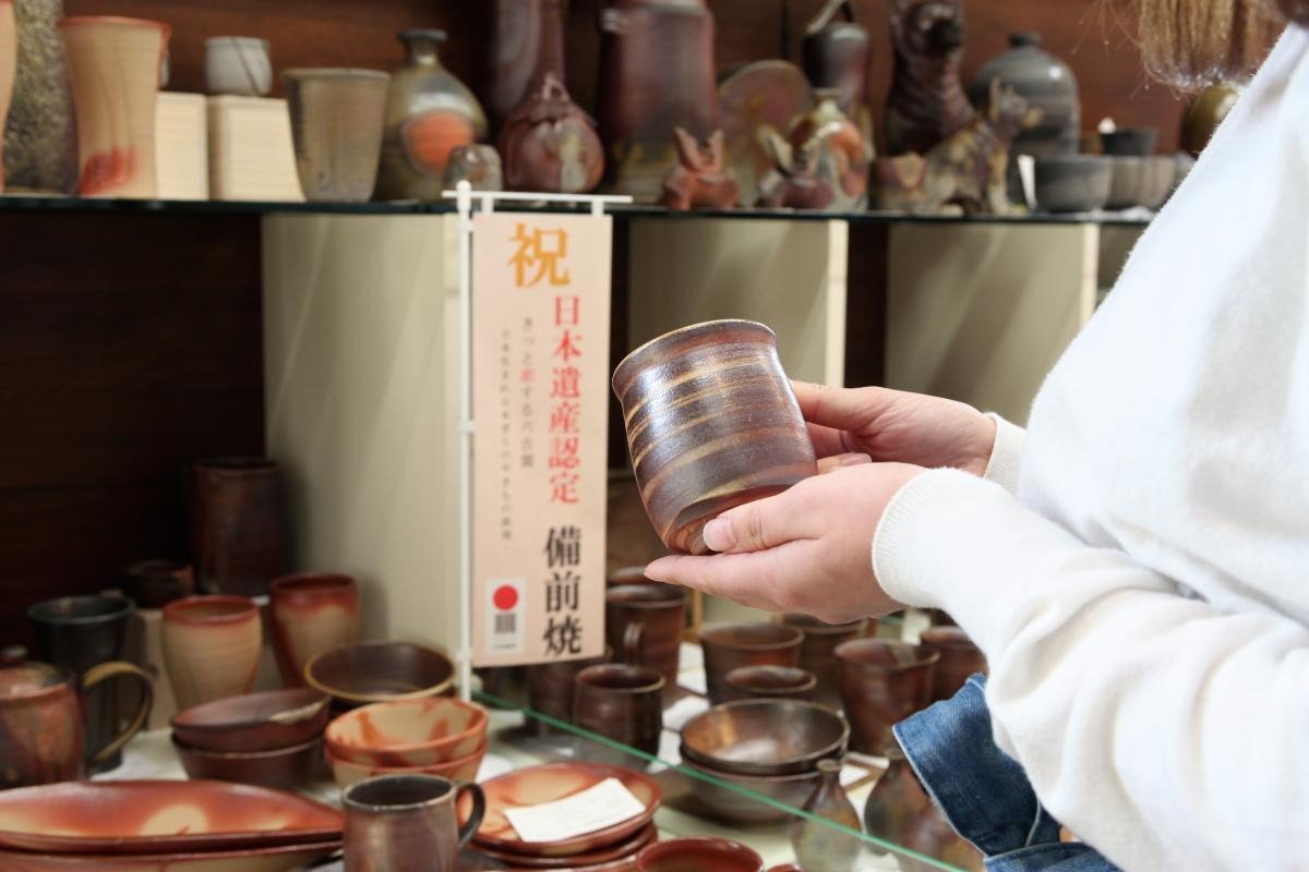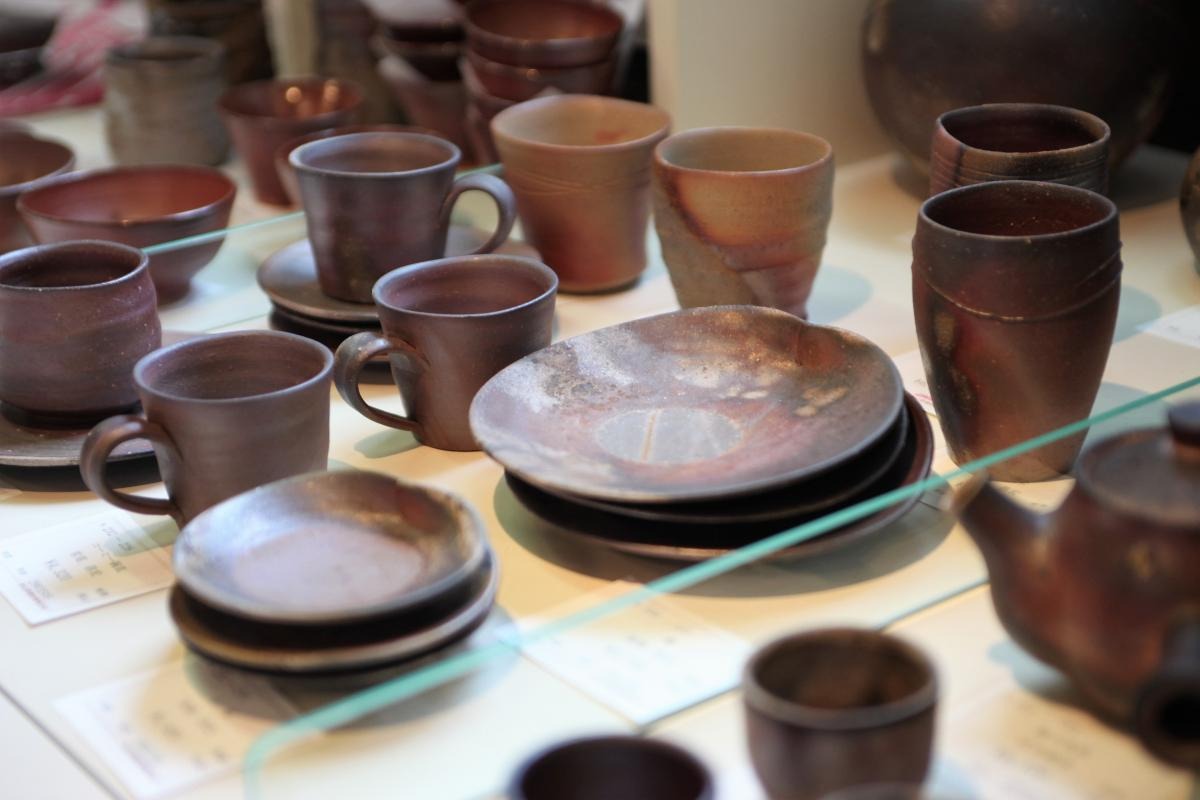 陶芸体験後は、作家さんの作った作品を見学、お買い物。作った後に見ると、「やはり見事な形と風合いだなあ」とつくづく感じます。手が届かないような高価なものばかりではありません。もともと備前焼は普段使いのために作られたものなので、十分私にも買えるお値段なのが嬉しいです。しかも、備前焼はほかの焼き物に比べて、しっかり焼いているから、割れにくいんだそうです。