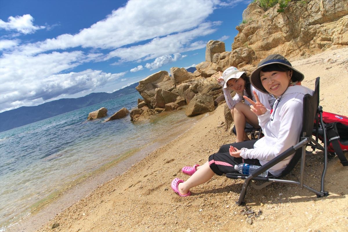 私たち以外他に誰もいない浜で、のんびりと波打つ海を眺めながら、極上のおやつタイムを堪能します。