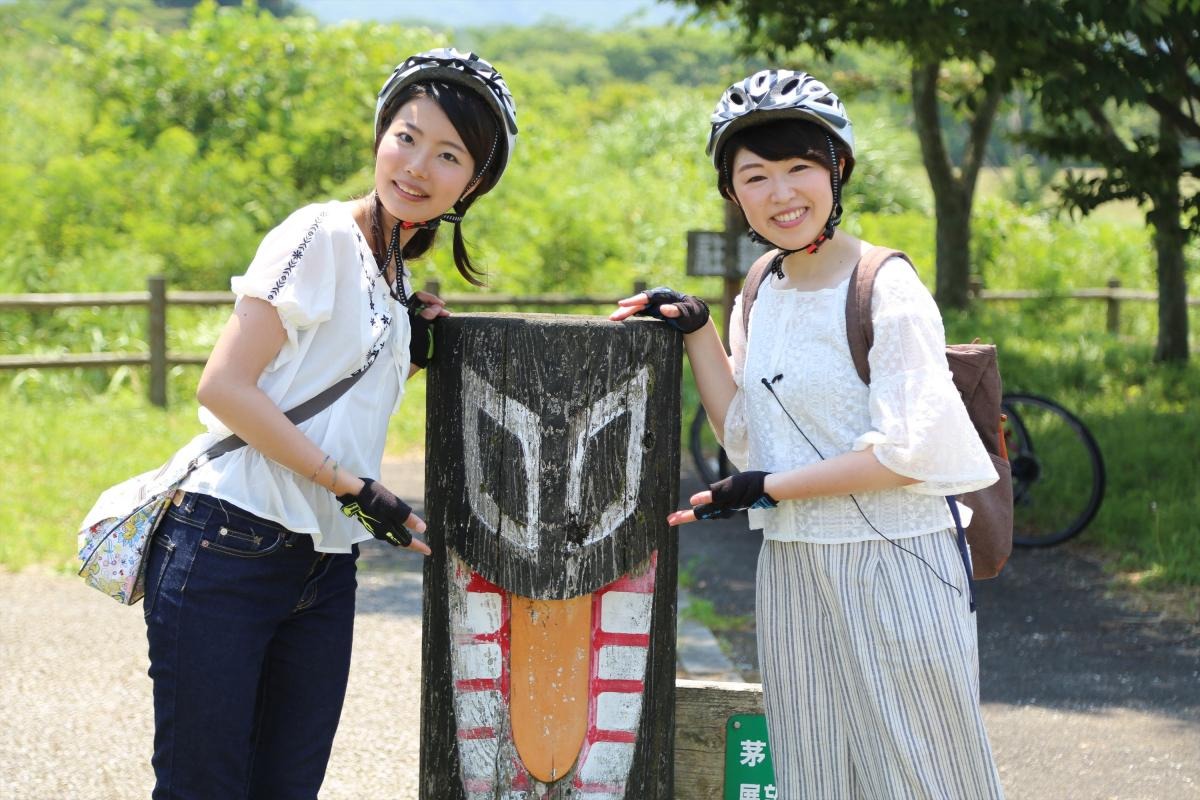 蒜山高原自転車道は、岡山県内で唯一、二人乗り自転車「タンデム」に乗ることが許されています。前後に分かれて乗車し、前方に乗る人がハンドル操作を行います。雄大な山々と広大な草原という大自然をバックに、風を受けながら、とても気持ちの良いサイクリングタイムを楽しむことができました。