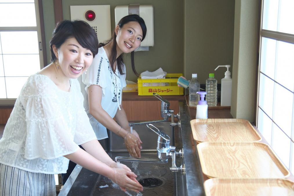 「まにわの遊びの教室」校長・正富先生にアイスクリーム作りの工程を伺い、手を洗って準備完了です!