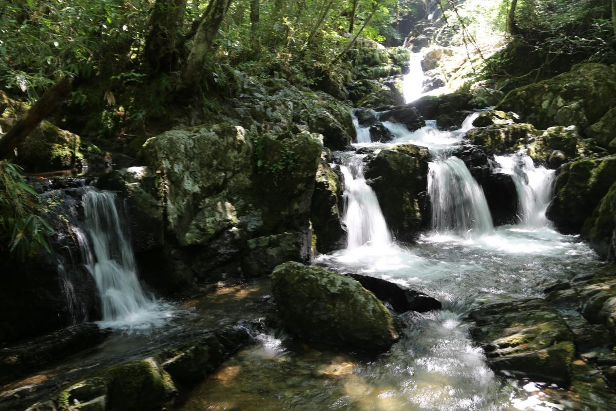 途中、金山さんが「三段の滝」「連段の滝」とそれぞれ名付けた、とても美しい滝の連なるスポットへ。