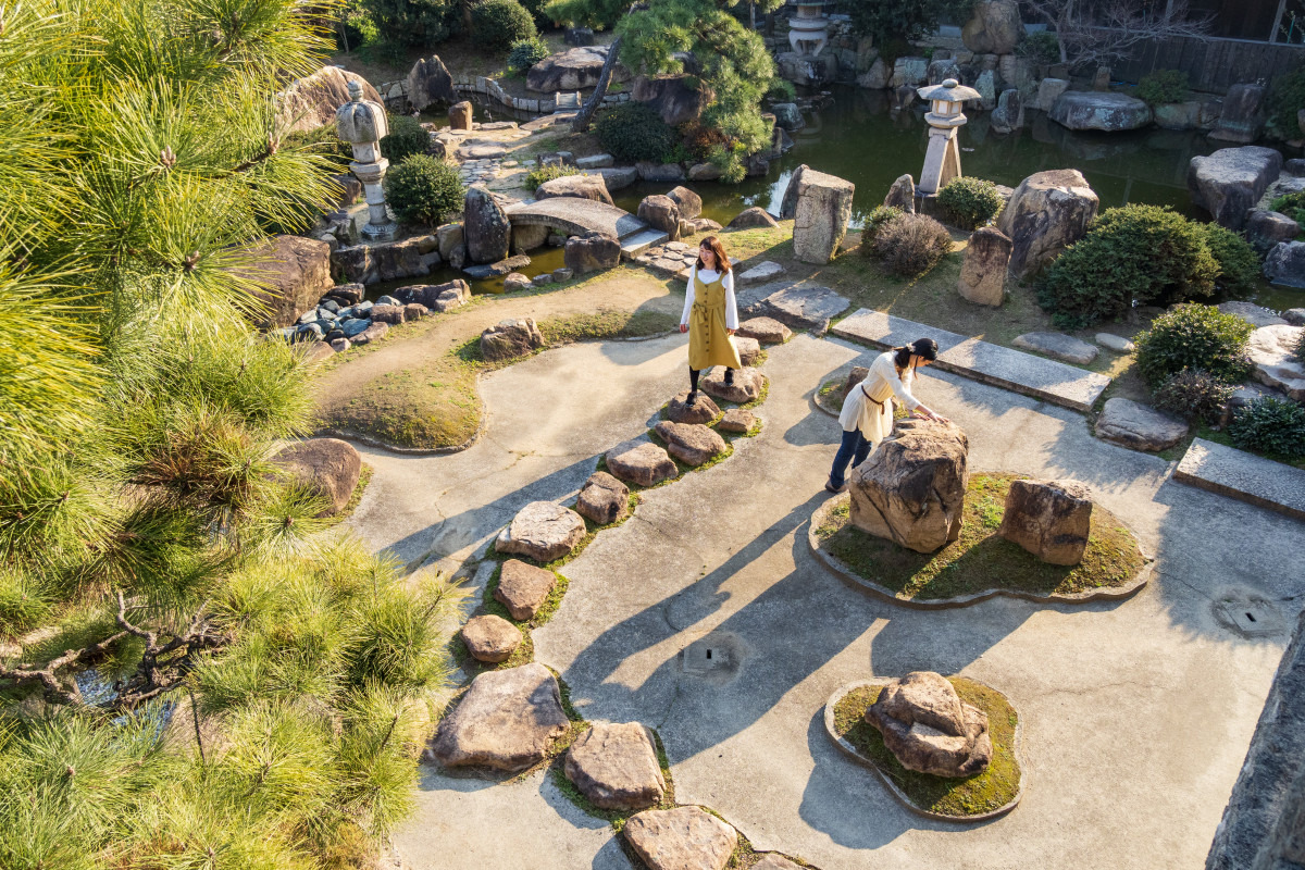 色合い、手触り、香り……。懐かしい空気感と、モダンなお洒落さを併せ持つ「い草コースター」。今回、体験場所となるのは、岡山駅からアクセス良好な、絶景庭園のある古民家ゲストハウスです。四季折々の自然に囲まれた心地良い空間で、2時間ほどかけて作品と向き合う、岡山名産のい草を使ってのコースター作り(体験料金:宿泊者/1,500円、一般/2,000円~)。おみやげだけでなく思い出も持ち帰れる、一石二鳥のアクティビティです。海外のお友達との体験もおすすめです!