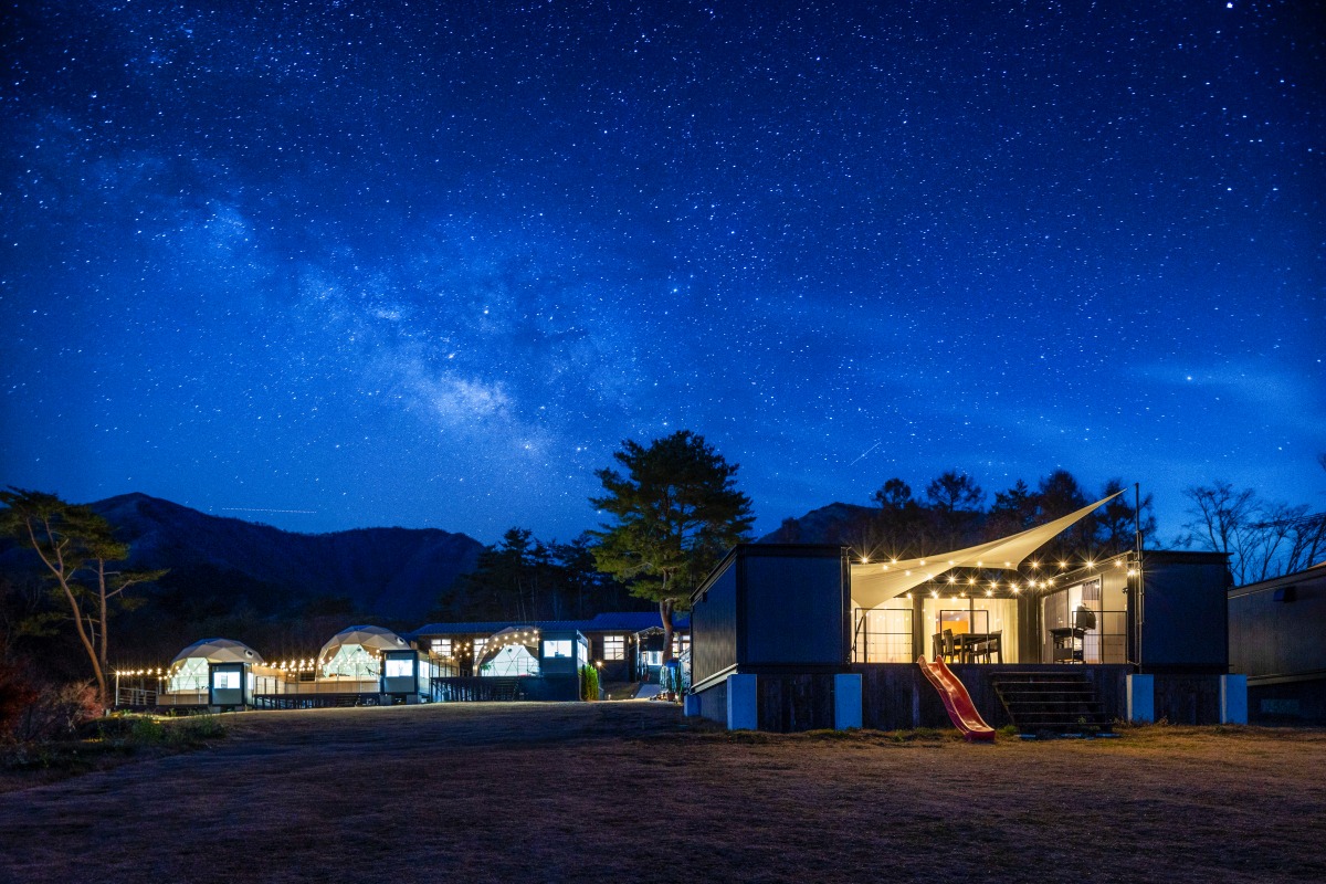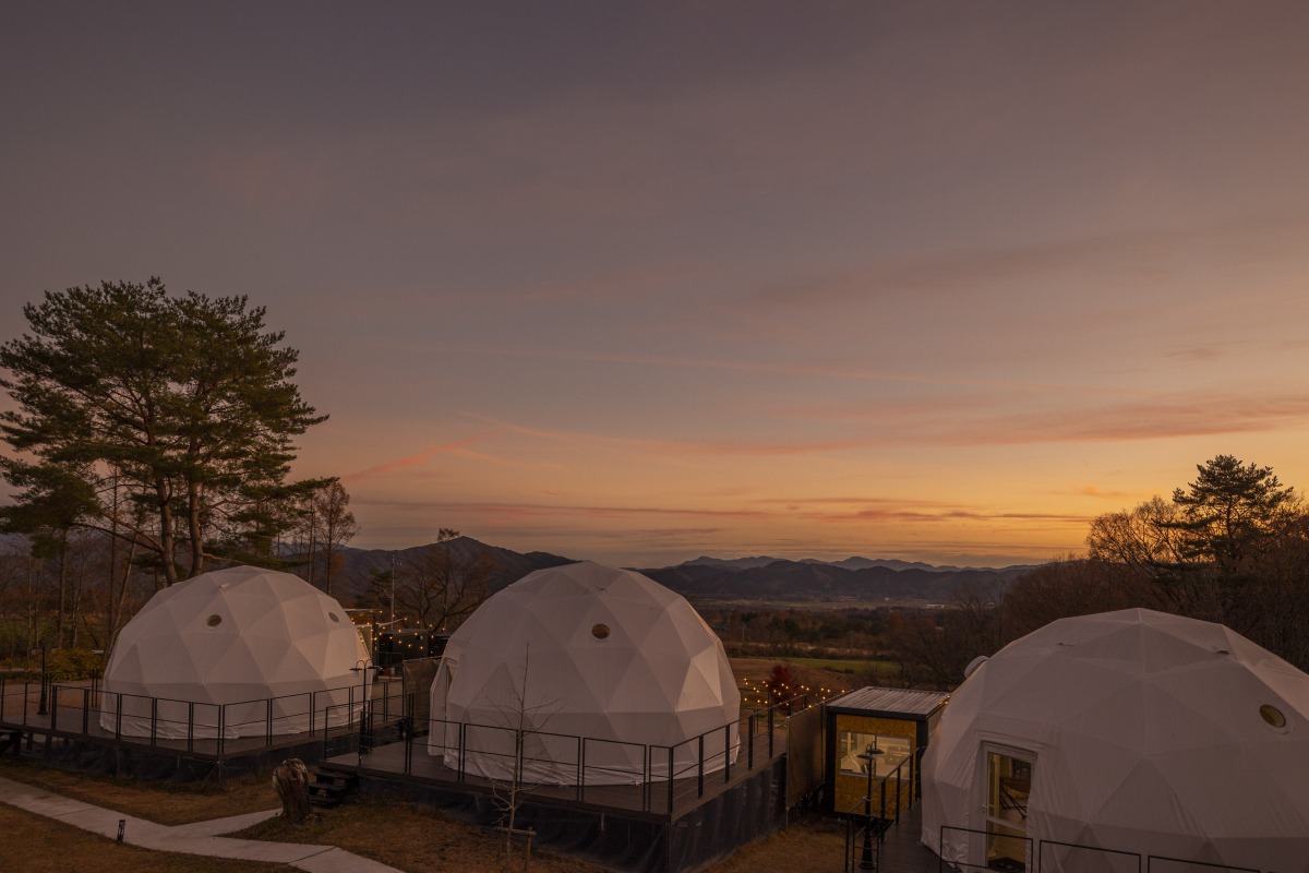 - 5棟限定のグランピング(直径7mの大型ドーム型テント/スタイリッシュなコンテナキャビン棟/ペット同伴可のドッグスイートキャビン)