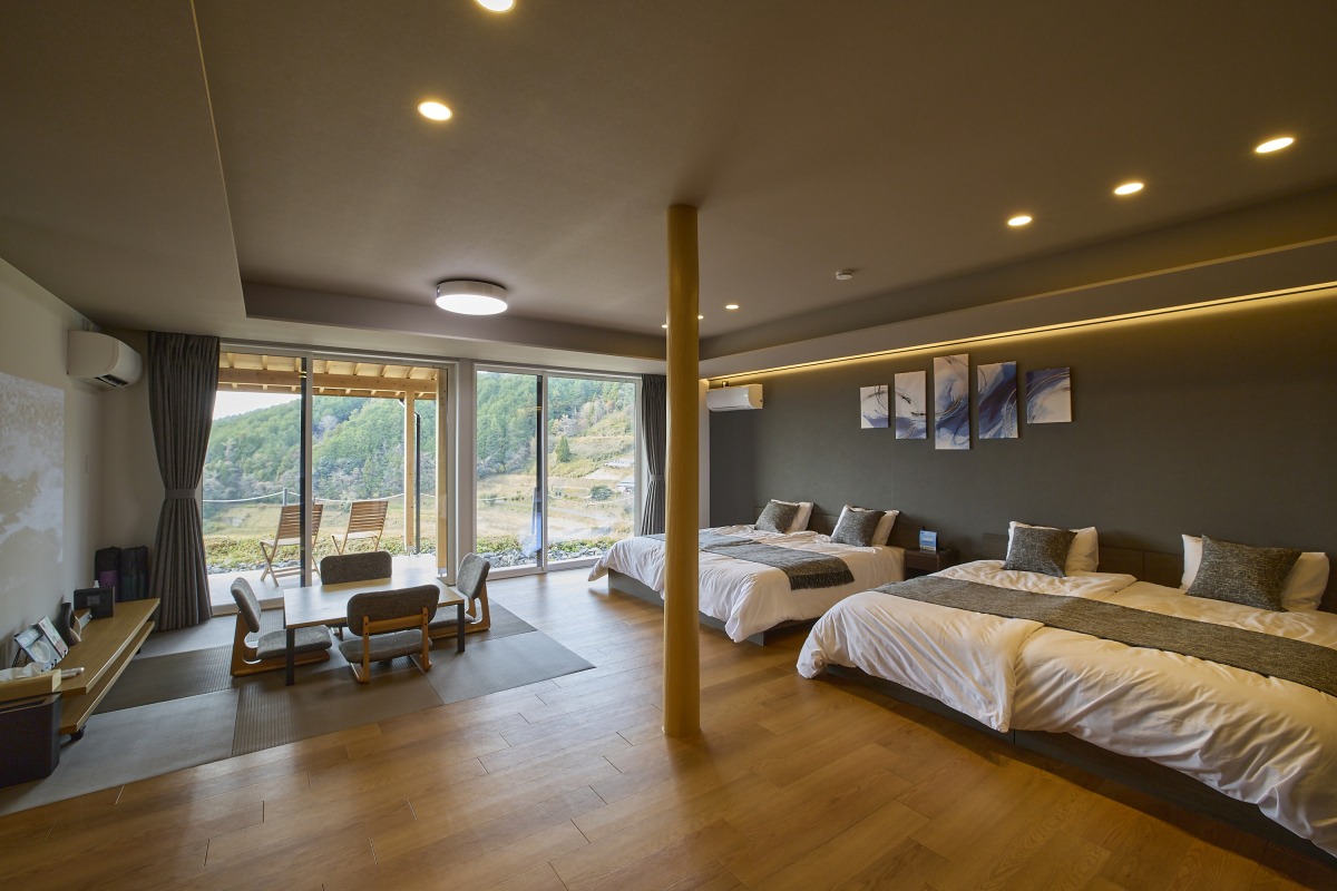 約1,000枚の棚田が四季折々の表情を見せる農村で“極上のととのい”を体験できる宿。上籾地区の地域協議会の一員として、まちづくりにも参加しています。日帰り利用もできます。