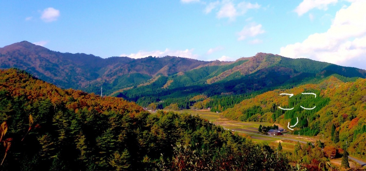JR中国勝山駅からコミュニティーバスまにわ君で新庄行き(新庄久世ルート)最終駅「梨瀬」下車後、徒歩6km