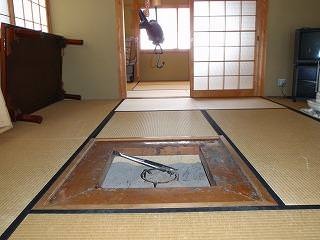 台所、バス、トイレ、テレビ、冷蔵庫、暖房、囲炉裏
