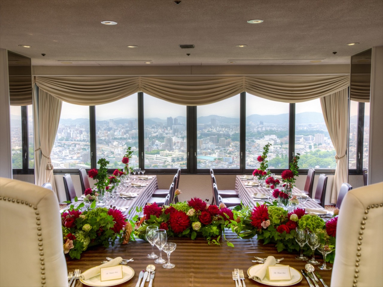 レストランは県産の新鮮な食材を使用し、洗練された料理とサービス提供しています。中四国最大級のスケールを誇る別館「瑞光の間」をはじめ、市街一望の会場や緑豊かな庭園に面した会場など、大中小18にも及ぶ宴会場があります。