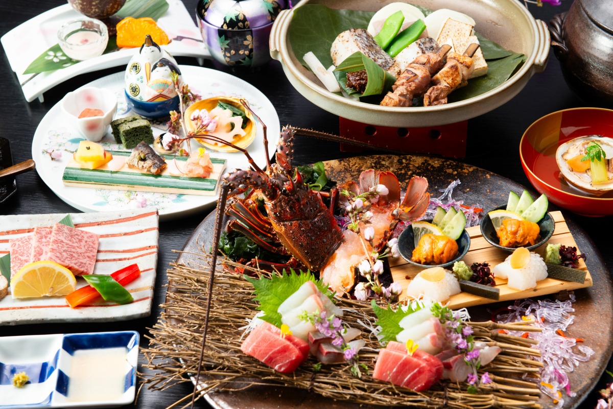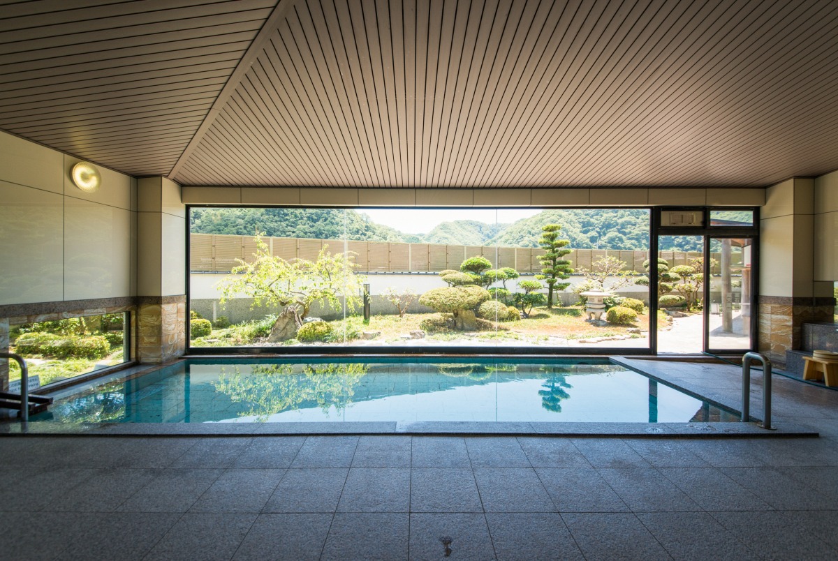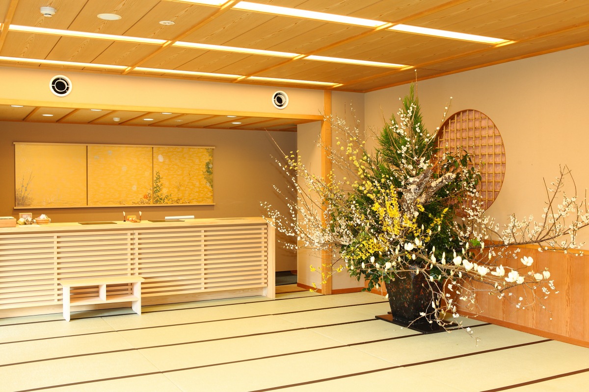美作三湯の一つ「湯郷温泉」にある老舗旅館。全館畳敷きフロアと館内を彩るおよそ76箇所の活け花が特徴です。お食事は山海の旬の幸を中心に、バリエーション豊かな素材を用いた会席コースを楽しめます。