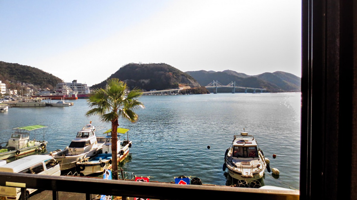 駅から近くて便利な宿です。玄関の前が海のため、「備前♡日生大橋」やサツキで刈り込んだ山肌の「ひなせ」の文字のイルミネーション、出航するフェリーなども良く見えます。