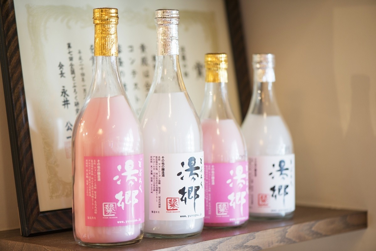 フォーシーズン湯郷は、岡山で初めてのどぶろくの製造販売を行っています。添加物は一切使用せず、自ら作ったアキタコマチを使用しています。
