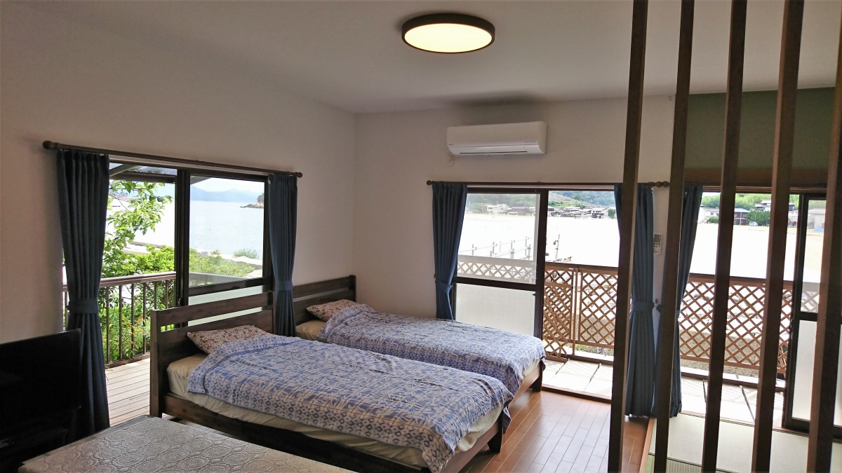笠岡諸島のほぼ真ん中にある、白石島のビーチの西側にある民宿。海水浴や海のレジャーにはとても良い立地。