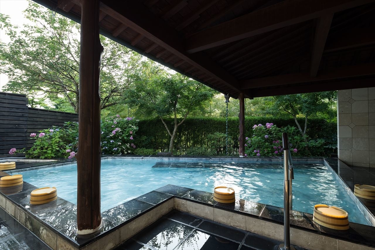源泉を持つお湯は様々な効能があり、昔から聞こえる奥津温泉ならではの美白・美人の湯でもあります。自然に囲まれた露天風呂で極上のひとときを満喫。良質な温泉に心も体もリフレッシュ。大浴場の壁面は彫刻家・空充秋氏の作品。広い露天風呂は木々に囲まれた癒しの空間で、日常を忘れゆったりとくつろげます。ワンちゃんと過ごせるプランもあります。