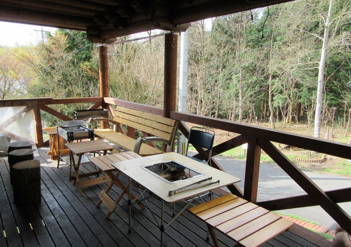 愛犬を同伴できる貸し別荘です。頭数制限はなく、大型犬も可能。ペットは無料です。玄関ドア前にはウッドデッキがあり、屋根のある下でBBQなどを楽しめます。※ペットがいなくても宿泊可能ですが、犬猫アレルギーの方はご遠慮ください。