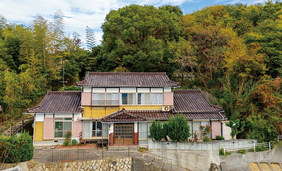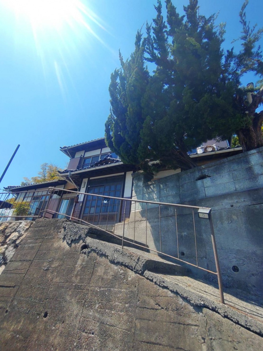 頭島の山の中腹にある島の家。2階からは、眼下の漁港から遠くは小豆島まで見渡せます。魚釣りや磯歩き、海水浴などへ歩いて行ける立地も魅力です。
