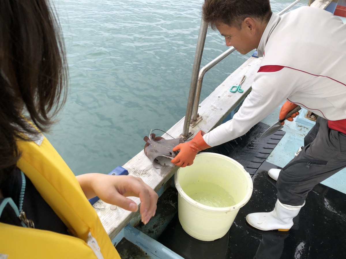 底引き網漁体験は、沖で網を引っ張る漁に挑戦します。どれたての魚介は持ち帰り自由。宿での自炊やバーベキューも楽しめます。