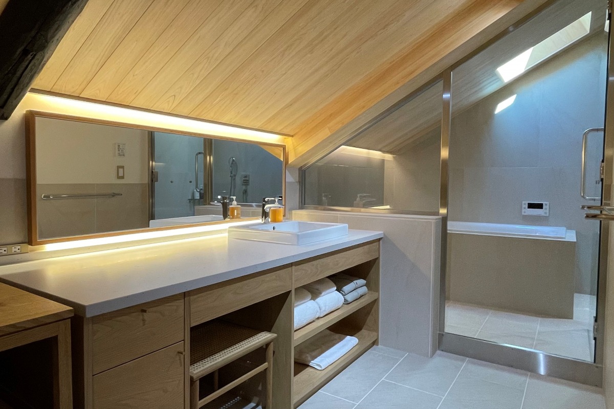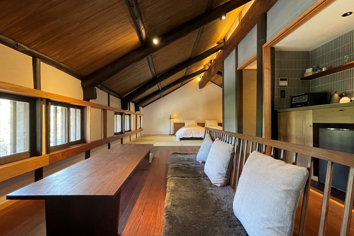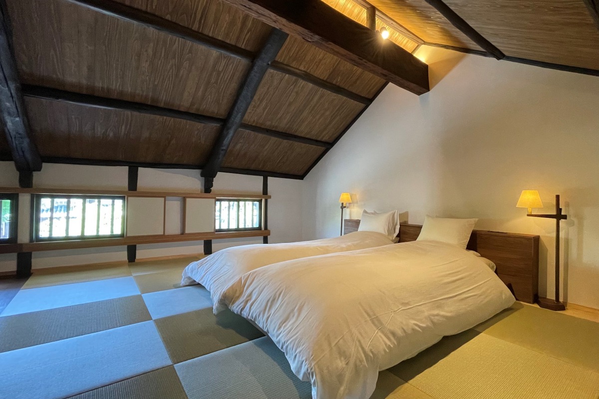 長く医院として利用されていた建物を宿泊施設として再生した宿です。明治期に建てられた商家と伝えられる建物の2階部分を改修しています。川沿いに面した格子窓からは、川のせせらぎと軒を連ねる町家を眺望できます。